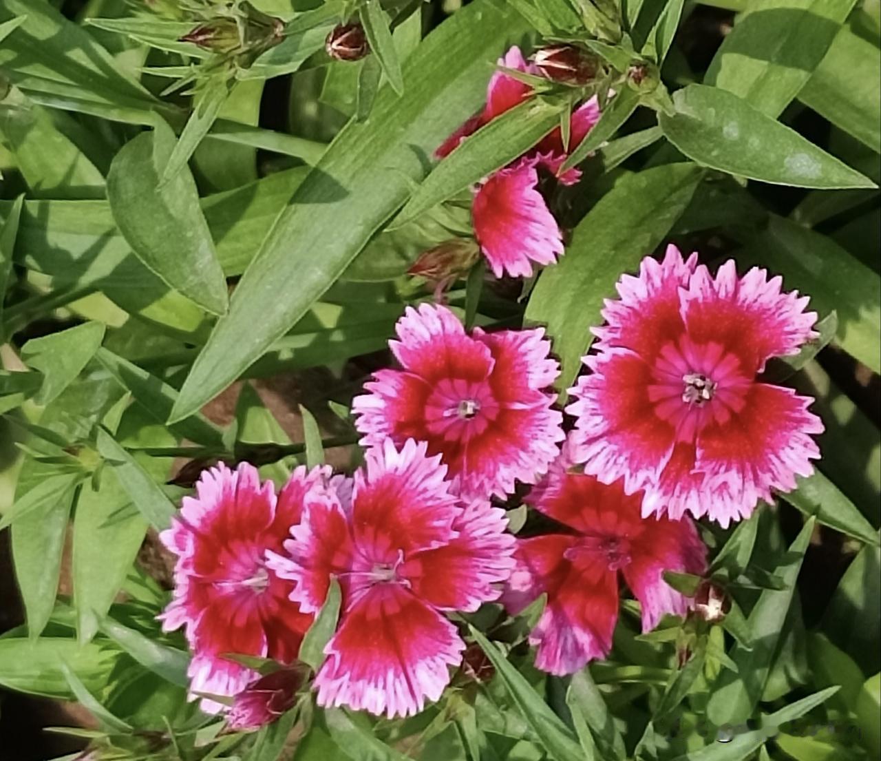 花朵形态:花瓣边缘呈现明显的锯齿状(像剪刀剪出的花边),这是石竹科植物最典型的特征。
