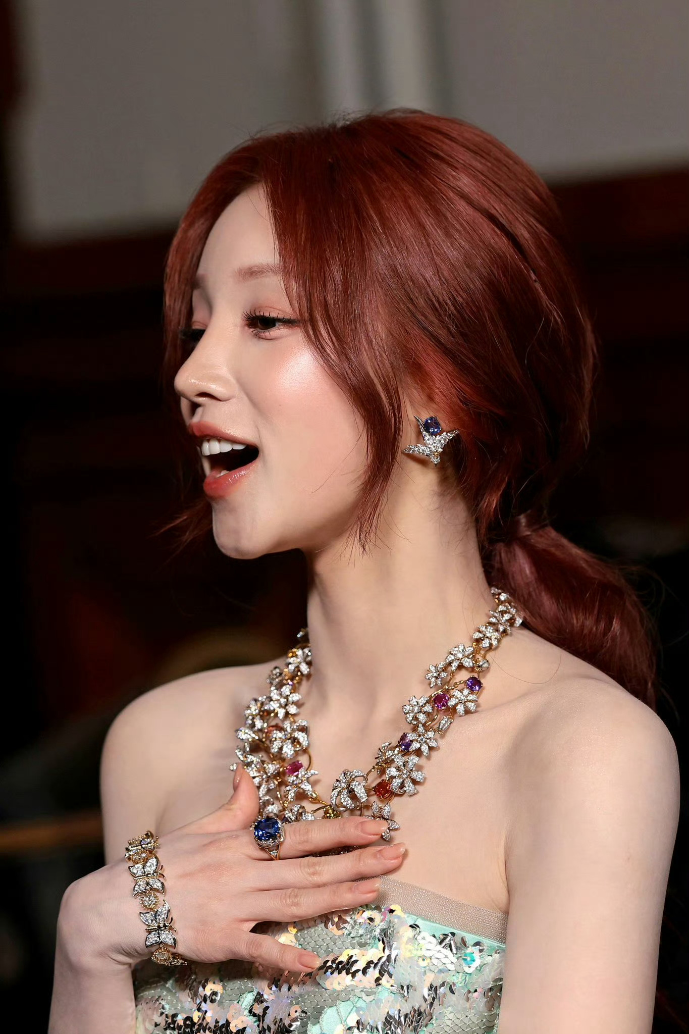 宋雨琦闪光灯下的表情管理 绿色礼服尽显优雅气质,面对密集闪光灯依旧淡定,专业表现力满分!