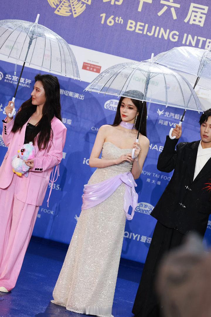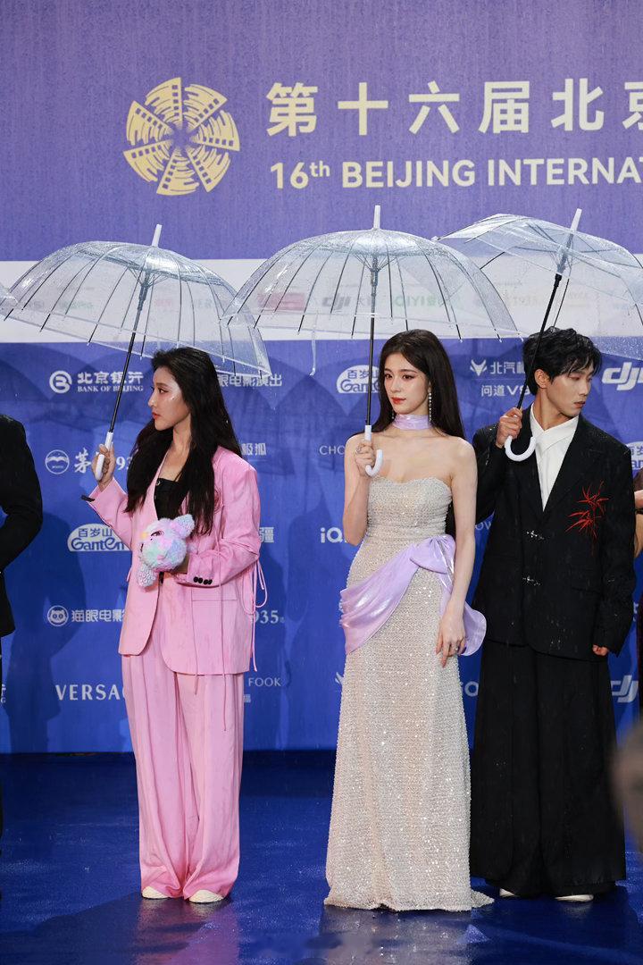 钟丽丽被雨淋了 别人撑伞她淋雨,不是故意搞特殊,是站中间真的没法撑。收伞之后雨水打在脸上,她也没躲,就那样走完了全程。这种不矫情的态度,看着挺舒服的。钟丽丽红毯被淋了