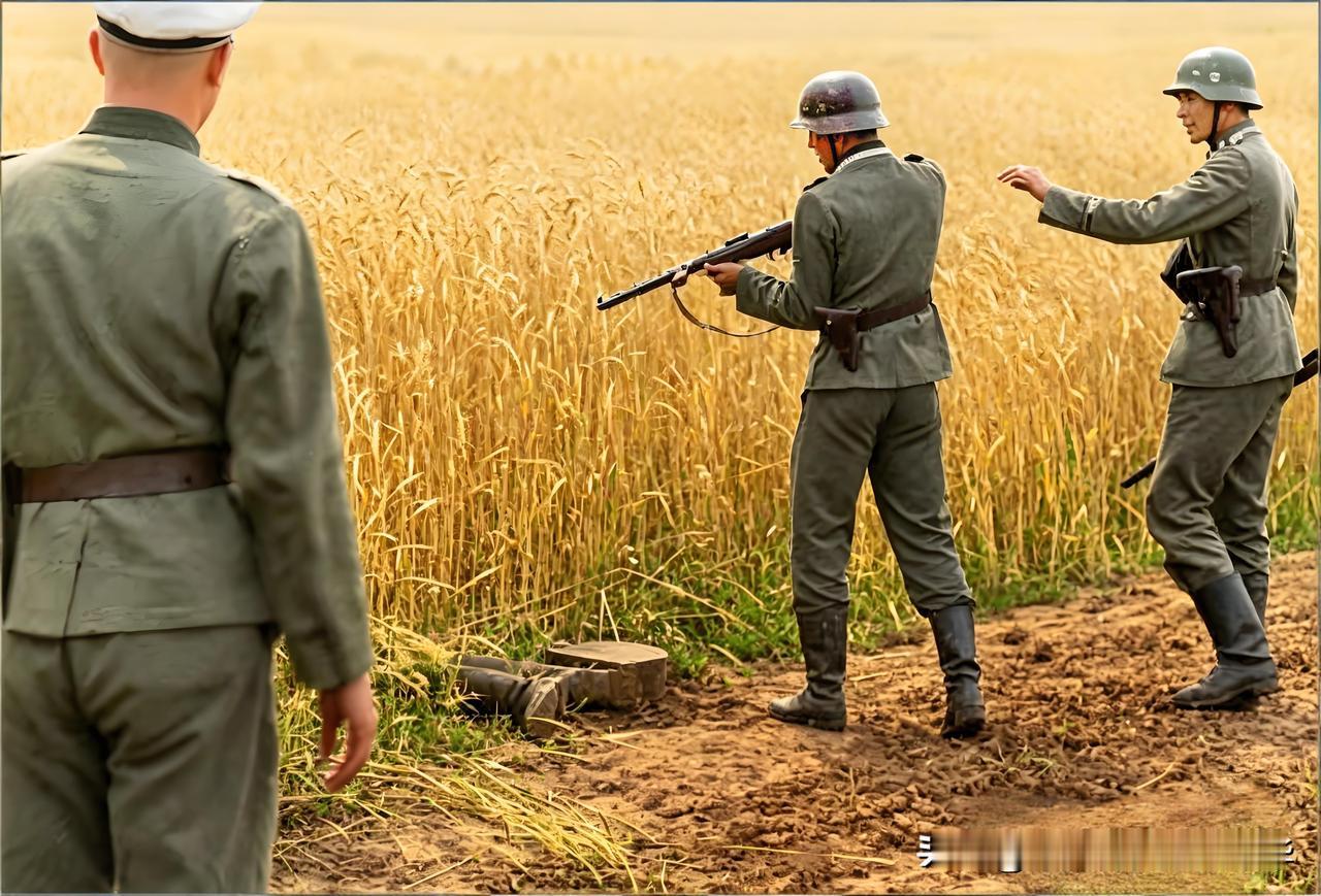 在村庄里当场抓捕一名提着马克西姆机枪弹药盒的村民。这名村民否认自己是游击队员,只是一个普通村民,机枪弹药盒是捡回来的。我觉得这个村民争辩毫无意义,大家觉得他是苏联游击队员吗?党卫军更是不会相信他的话。并宣布他为苏联游击队员,把他押送到田野中处决。牢记历史爱我中华