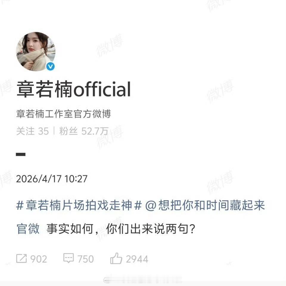 章若楠片场拍戏走神章若楠拍摄《想把你和时间藏起来》,开拍后因为有粉丝叫她,她下意识回应了,被网友认为拍戏不入戏,媚粉,还有说她拍摄时台词说321今天章若楠工作室直接艾特剧组,意思是让剧组澄清片场真实情况,看得出来章若楠工作室很生气 章若楠工作室喊话剧方 章若楠被网友审判了
