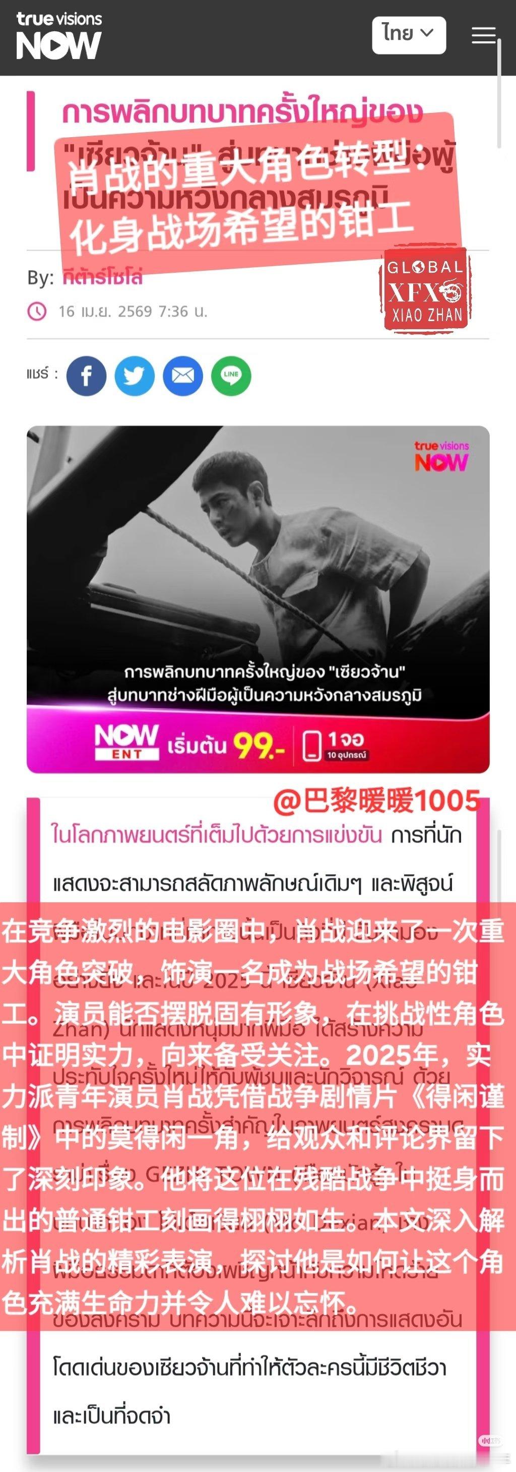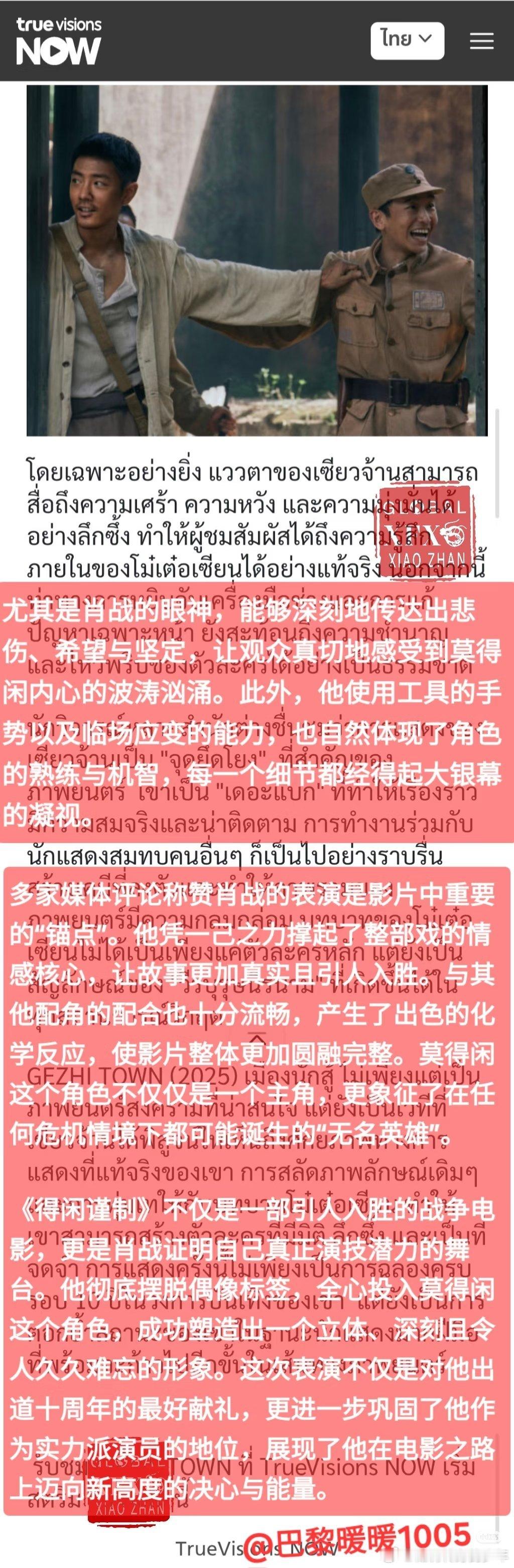 外媒盛赞:肖战是全片的“定海神针”!4月16日《得闲谨制》正式上线TruevisionsNow,平台发表文章,深入解析肖战莫得闲 的精彩表演,他是如何让这个角色充满生命力并令人难以忘怀。“他在莫得闲一角中的表演呈现出一种“超现实主义的真实感”,不煽情、不浮夸,却在朴实自然中蕴藏着强大的感染力,让观众完全相信这是一个在绝境中奋力求生的普通人”。肖战在影片中的“每一个细节都经得起大银幕的凝视”肖战莫得闲演技大赏 ,太牛了