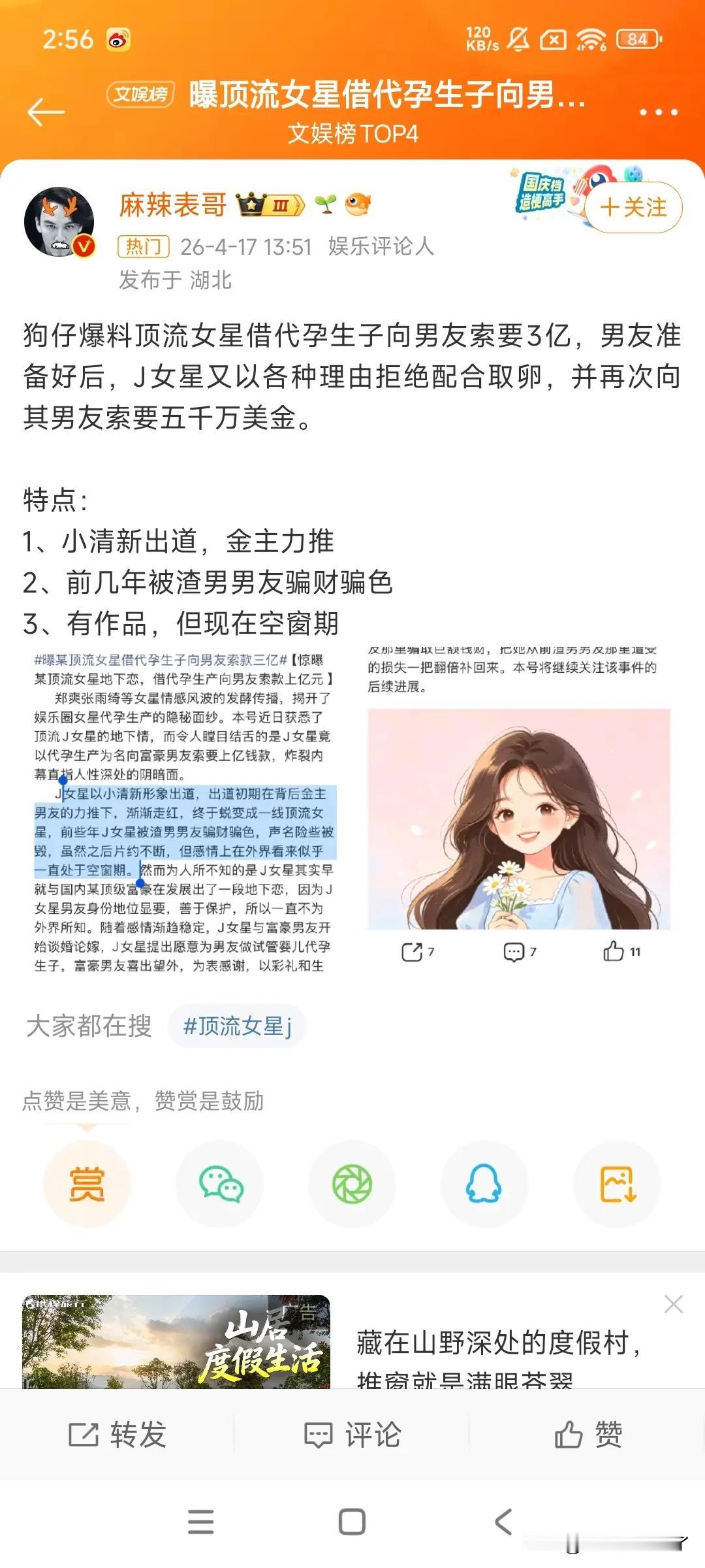 曝顶流女星借代孕生子向男友索要3亿 这还真是不便宜!