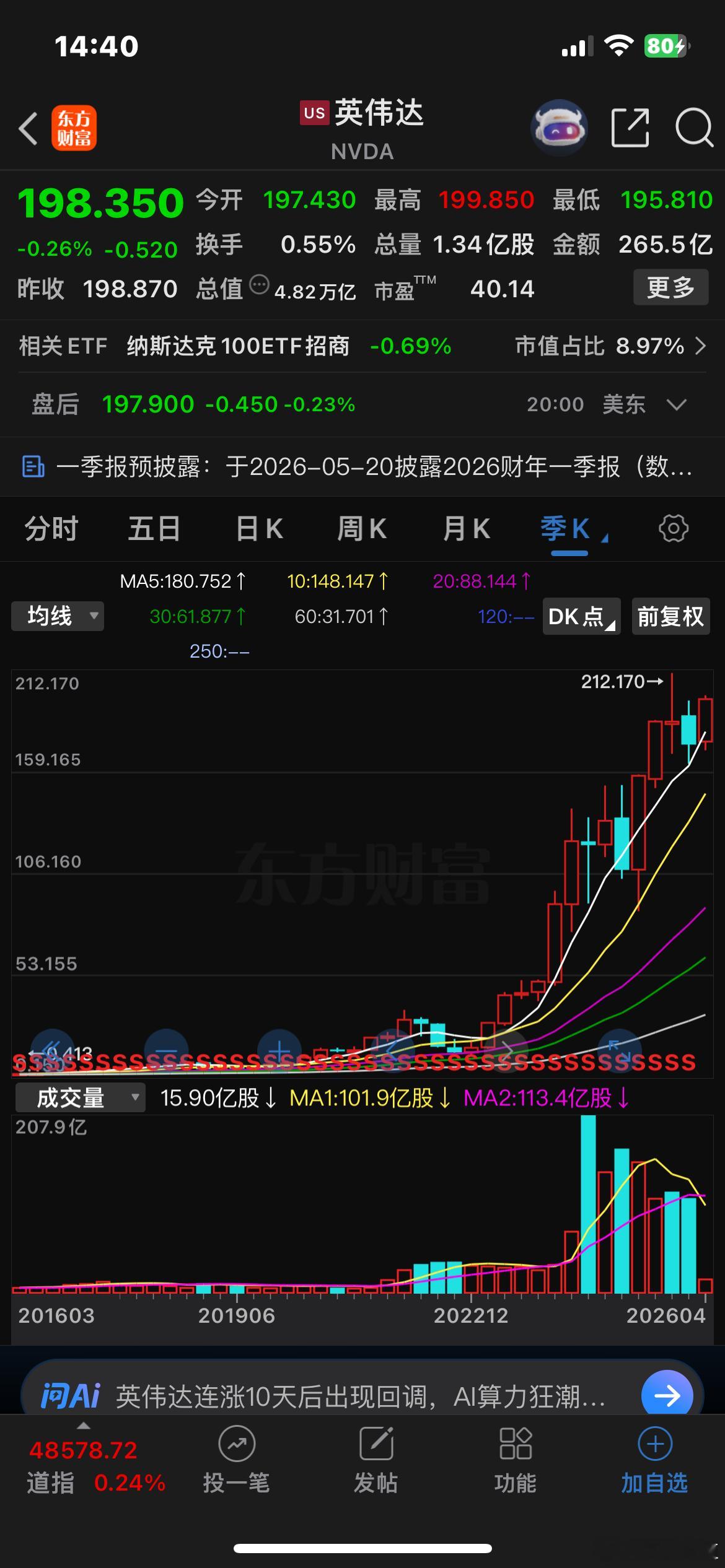 讯飞和英伟达都是2016年一季度找到的,这十年来,英伟达营收翻了46倍,市值翻了200倍。而讯飞营收翻了10倍,市值却才翻了2倍,最高时翻了4倍,更是坐了三轮超50%的过山车…一直的坚守只为初心与预见,为人工智能时代而投资,为讯飞的崛起而坚持,等待它的戴维斯绽放…🍎🌹