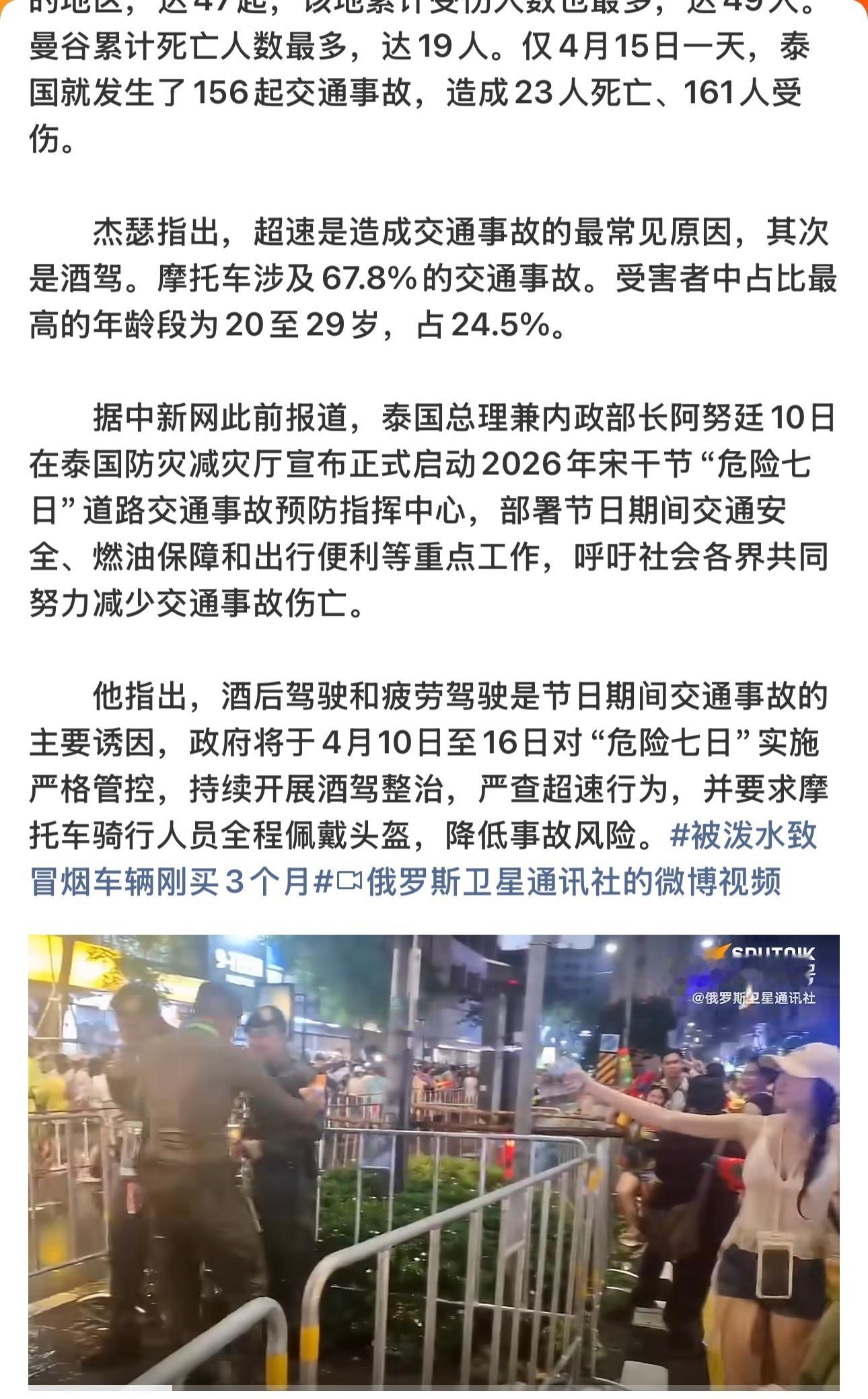 泰国泼水节216人死亡泰国泼水节6天,1108起事故,216人死亡。算下来每天3