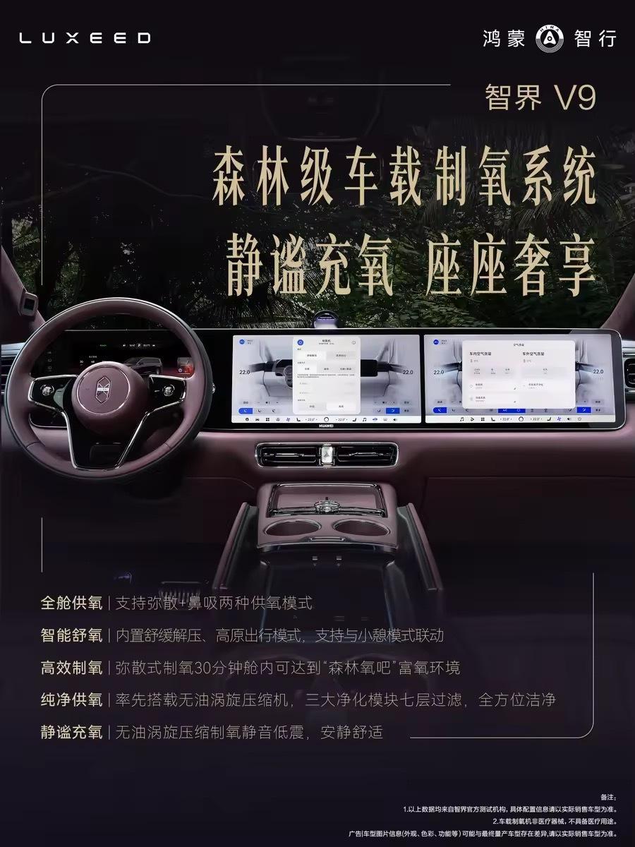 第一台搭载制氧机的MPV来了智界V9这个车载制氧系统我觉得还挺有意思的,不是单纯多一个配置,而是真的在往乘坐舒适上做。长途开车累、高原缺氧、停车休息这些场景,其实都挺需要补氧的。智界V9座舱还可以养生智界V9这套东西不只是能制氧,还能根据场景去调,弥散和鼻吸两种方式都给到了,语音就能开,打开弥散式制氧,车里30分钟就变成富氧环境,整个人会放松很多。现在很多车都在讲座舱,但像这种把健康、舒适和智能一起往前做的,才更像旗舰MPV该有的样子。