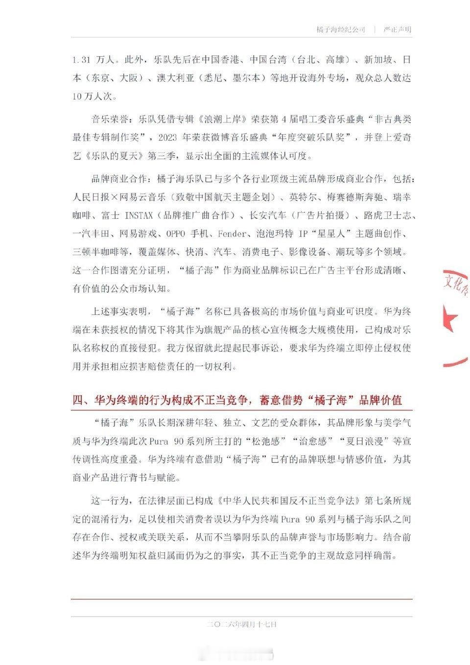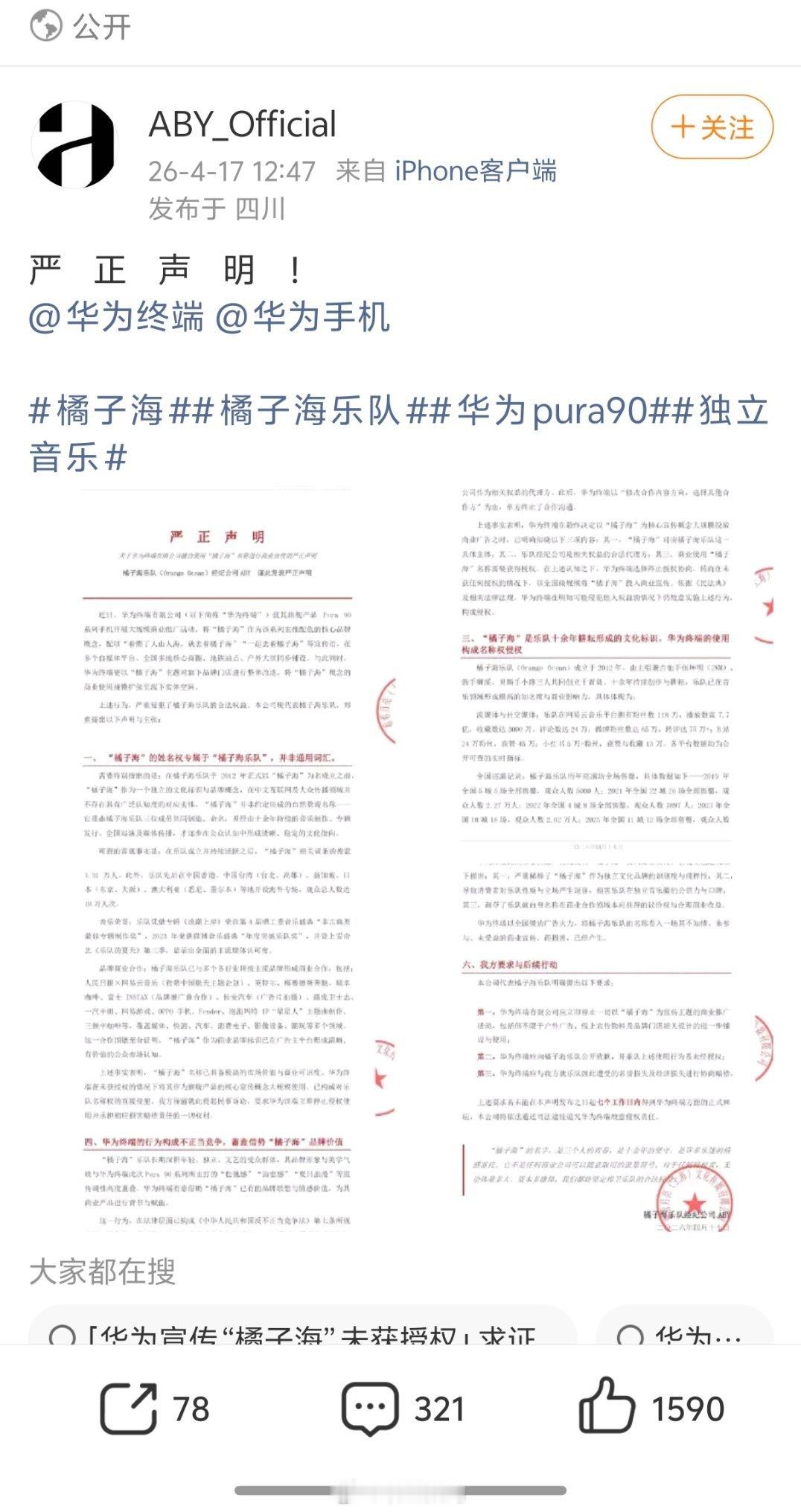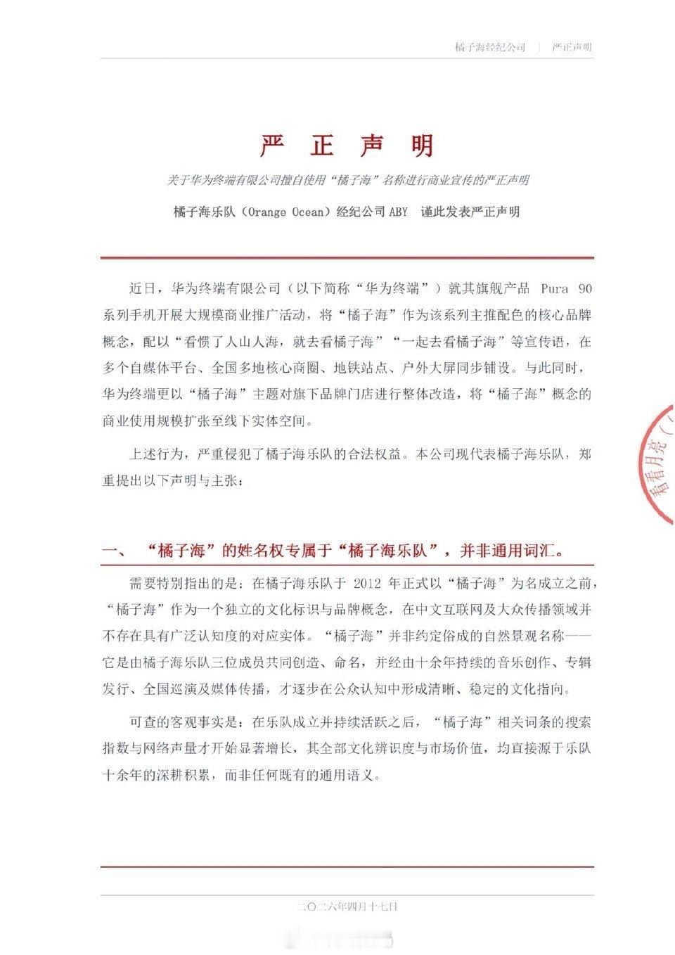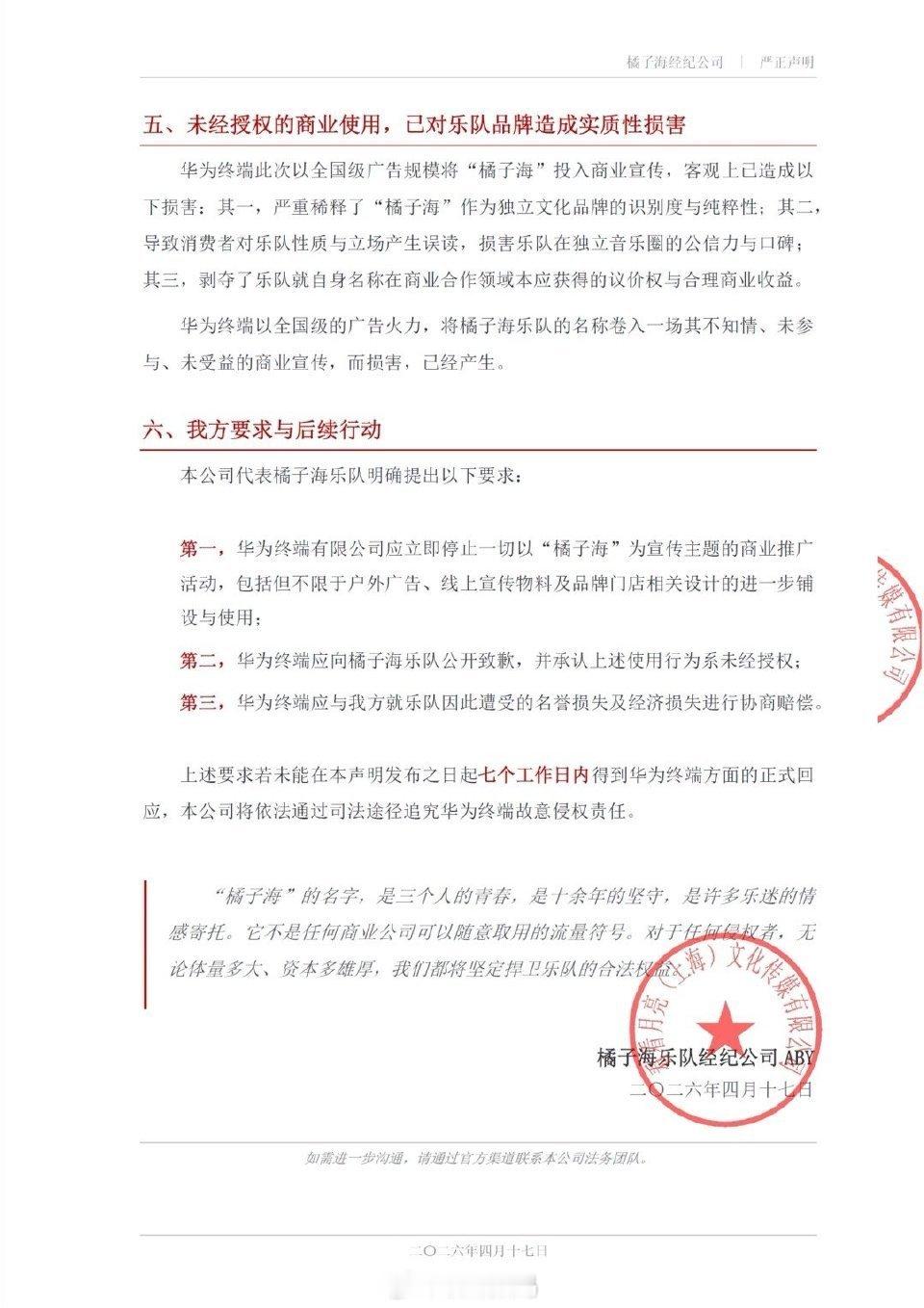 橘子海乐队经纪公司发了个声明,认为华为用了“橘子海”存在侵权。你支持谁?