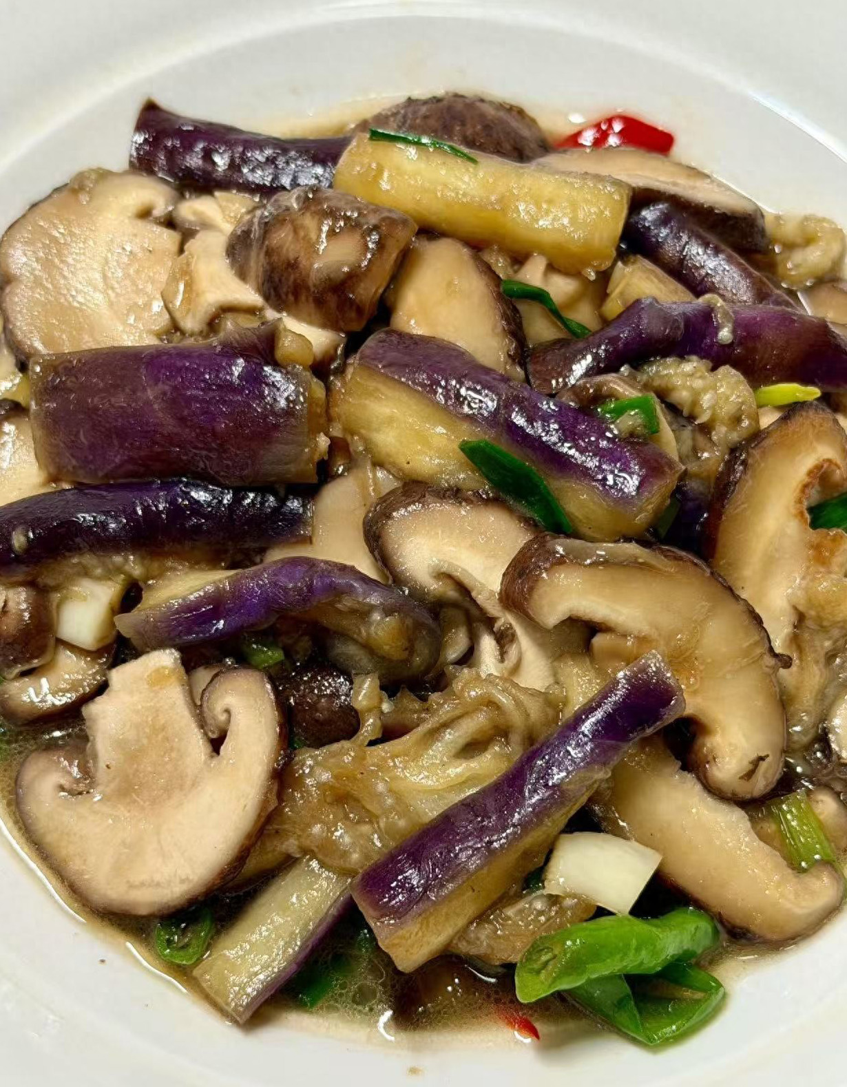 加十三香、鸡精、盐、蚝油、半勺老抽调味,撒葱花出锅香菇是天然的 “免疫食材”,搭配茄子软糯入味,春天吃给身体 “充电”,增强抵抗力!