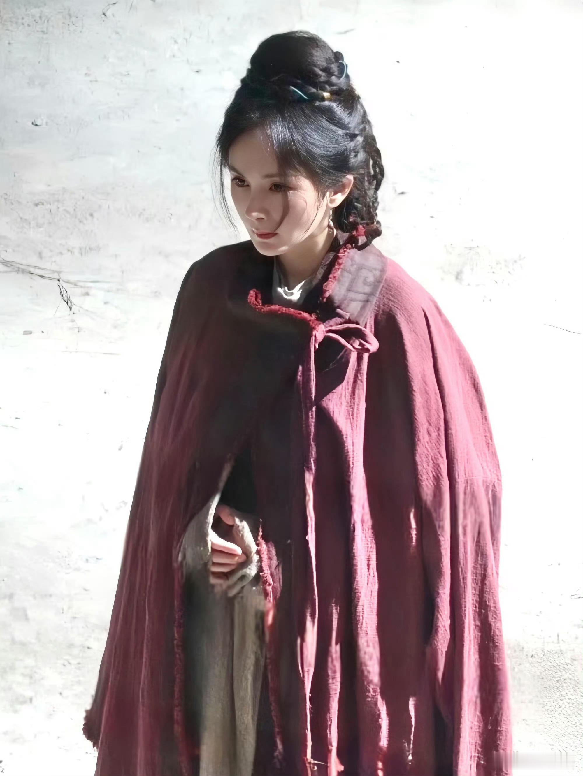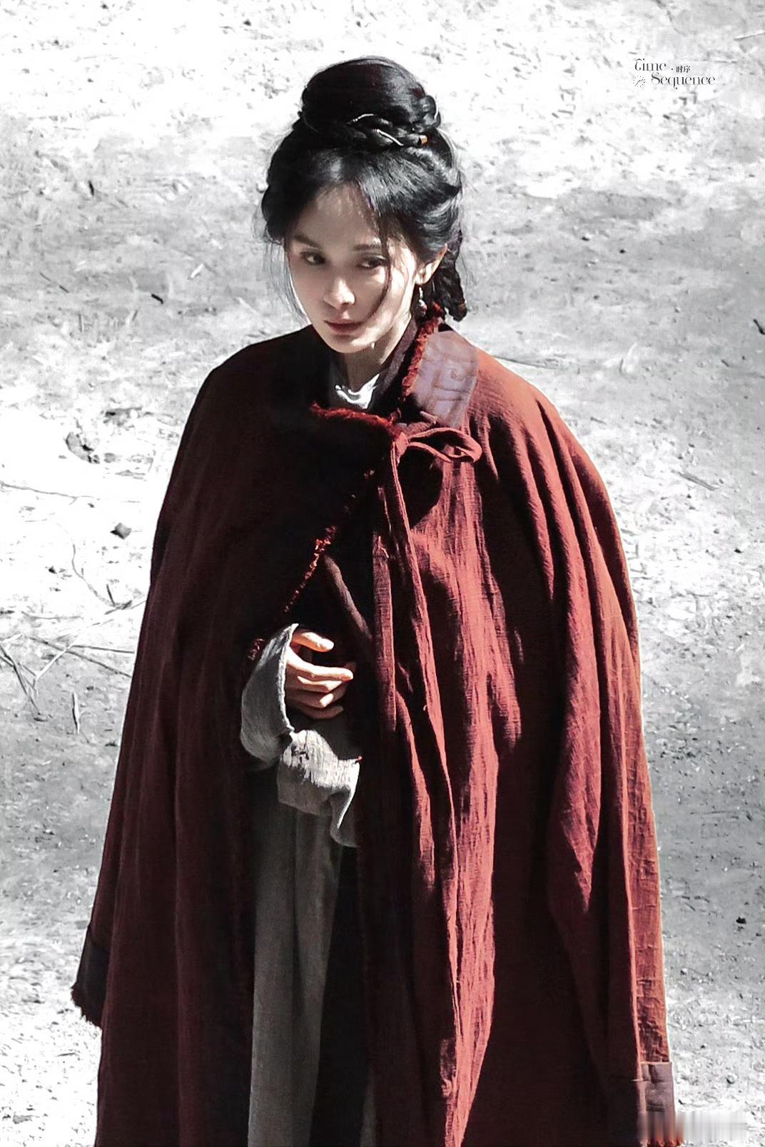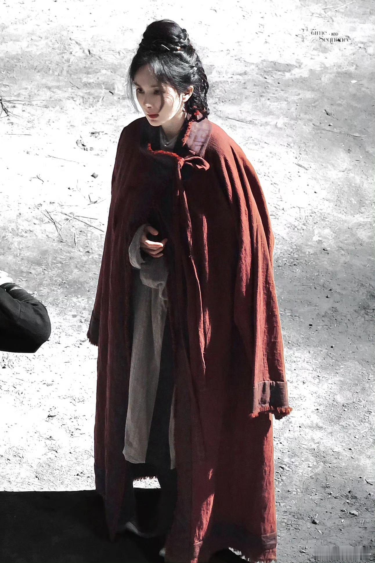 还以为是杨幂早期以为是杨幂早期最近刷到《江山大同》的路透,杨幂穿着红色麻布披风站