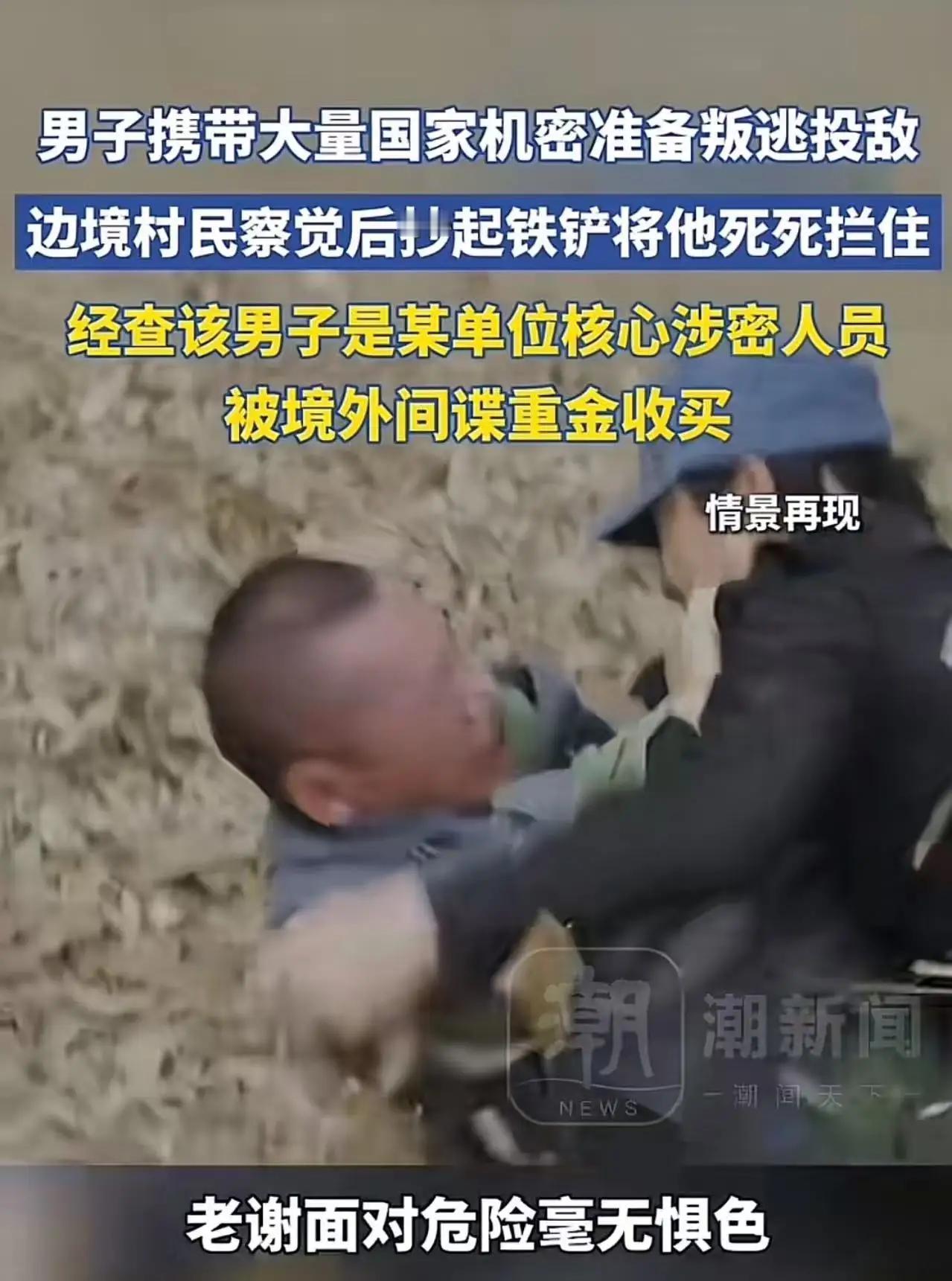 诸位朋友,今儿咱们单说西南边境那场“惊心动魄”的遭遇战。这事儿,听着像“谍战大片”里的桥段,实则是一记戳中全民嗨点的“硬核爽文”。某单位核心涉密人员,被境外重金收买,揣着国家机密想叛逃投敌。千钧一发之际,边境老农老谢,凭着一股子“不对劲”的直觉,抄起铁铲就追,硬生生在隔离栏前把人死死拦住!这一铲子,铲断的是叛国阴谋,守住的是国家安全底线,更铲出了“位卑未敢忘忧国”的浩然正气。