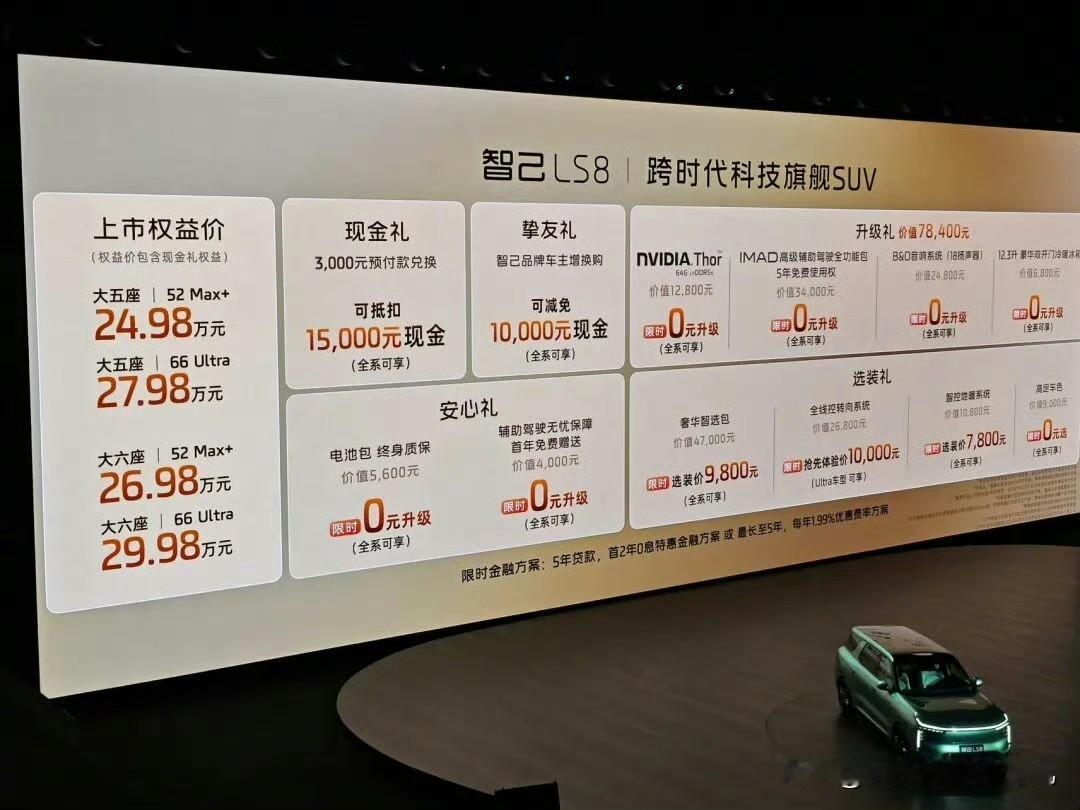 智己就是有魄力,为了销量拼了。相对于小鹏GX,39.98万的预售价,智己LS8售24.98万元起上市。