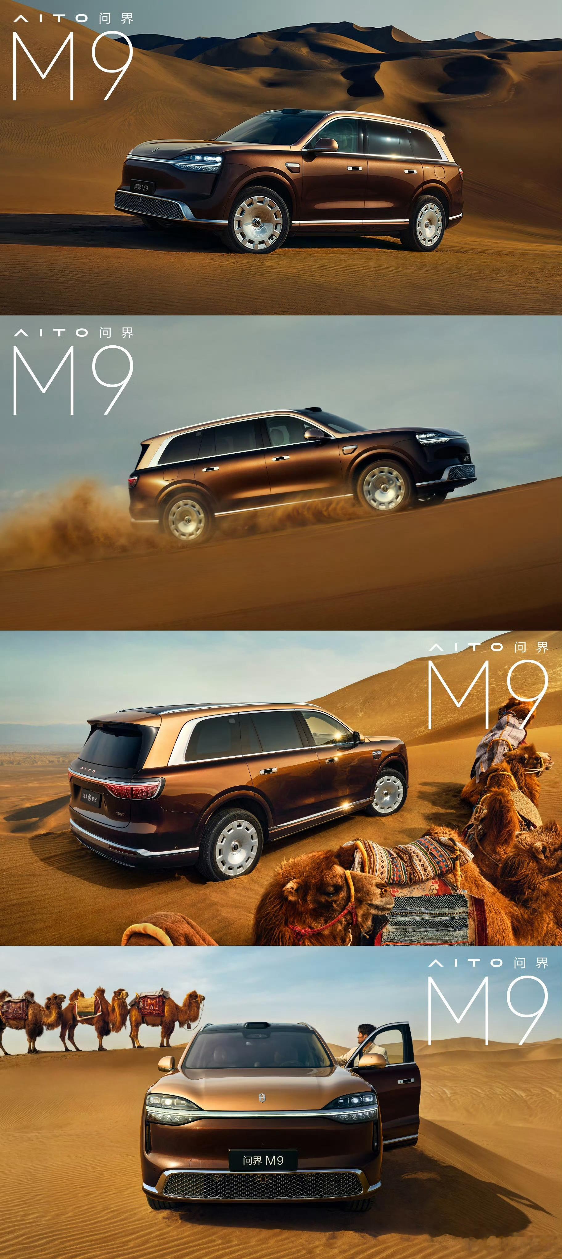 这次问界m9的全新三款配色沧海银兰、赛里木青、大漠金棕鸿蒙智行问界m9