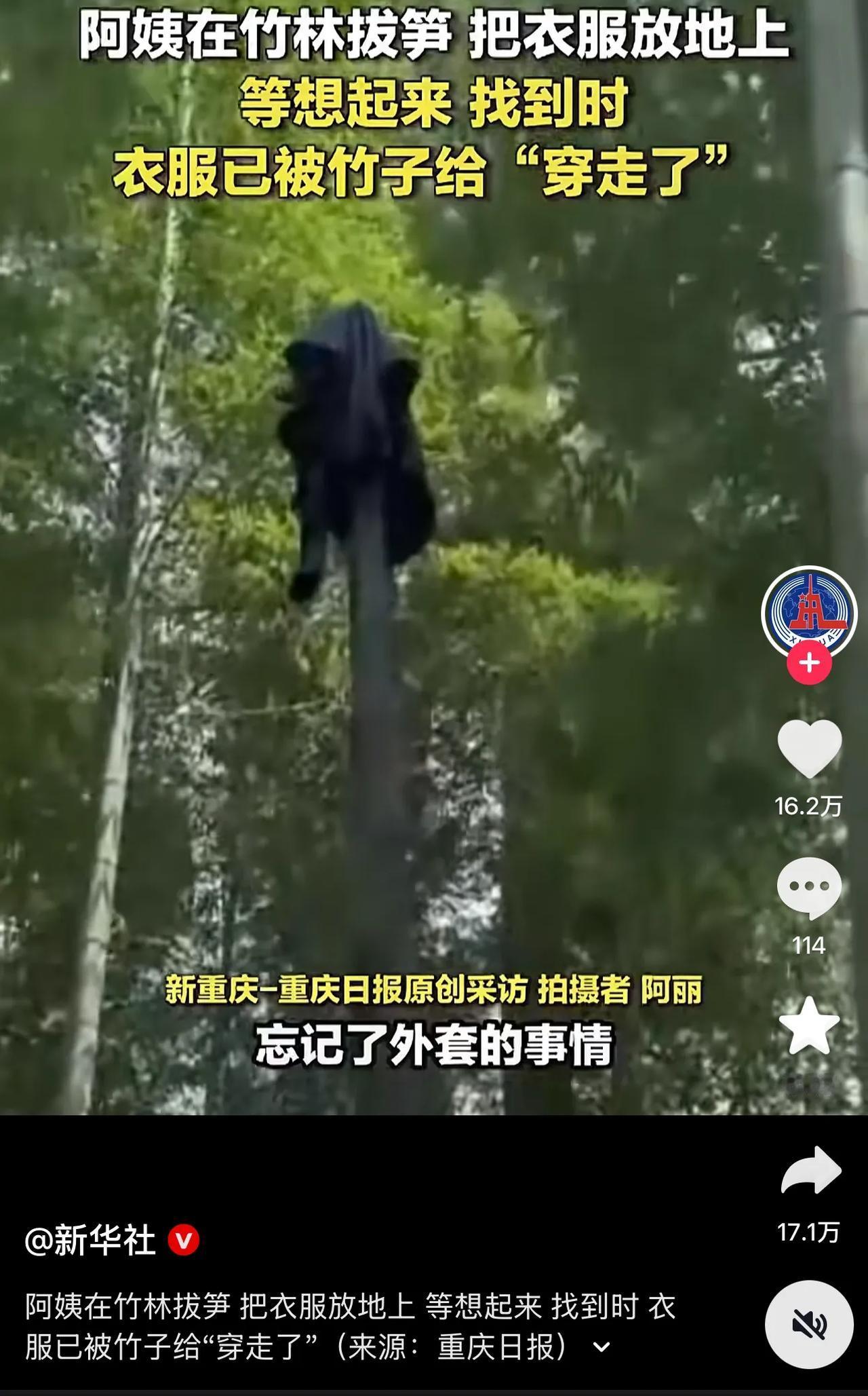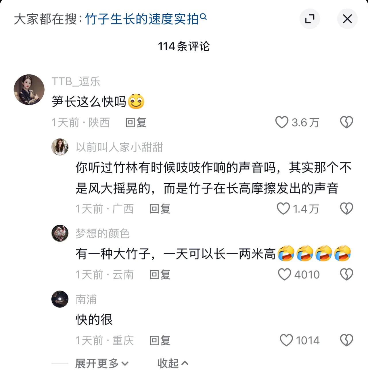 竹子长的很快,没想到这么快。一会的功夫,放在地上的衣服,就够不着了。大自然的物种很神奇,不但是存在即合理,真的都是很强大的生命力,都是我们人类所不及的能力,只是依靠环境,就可以长出无法追赶的速度。