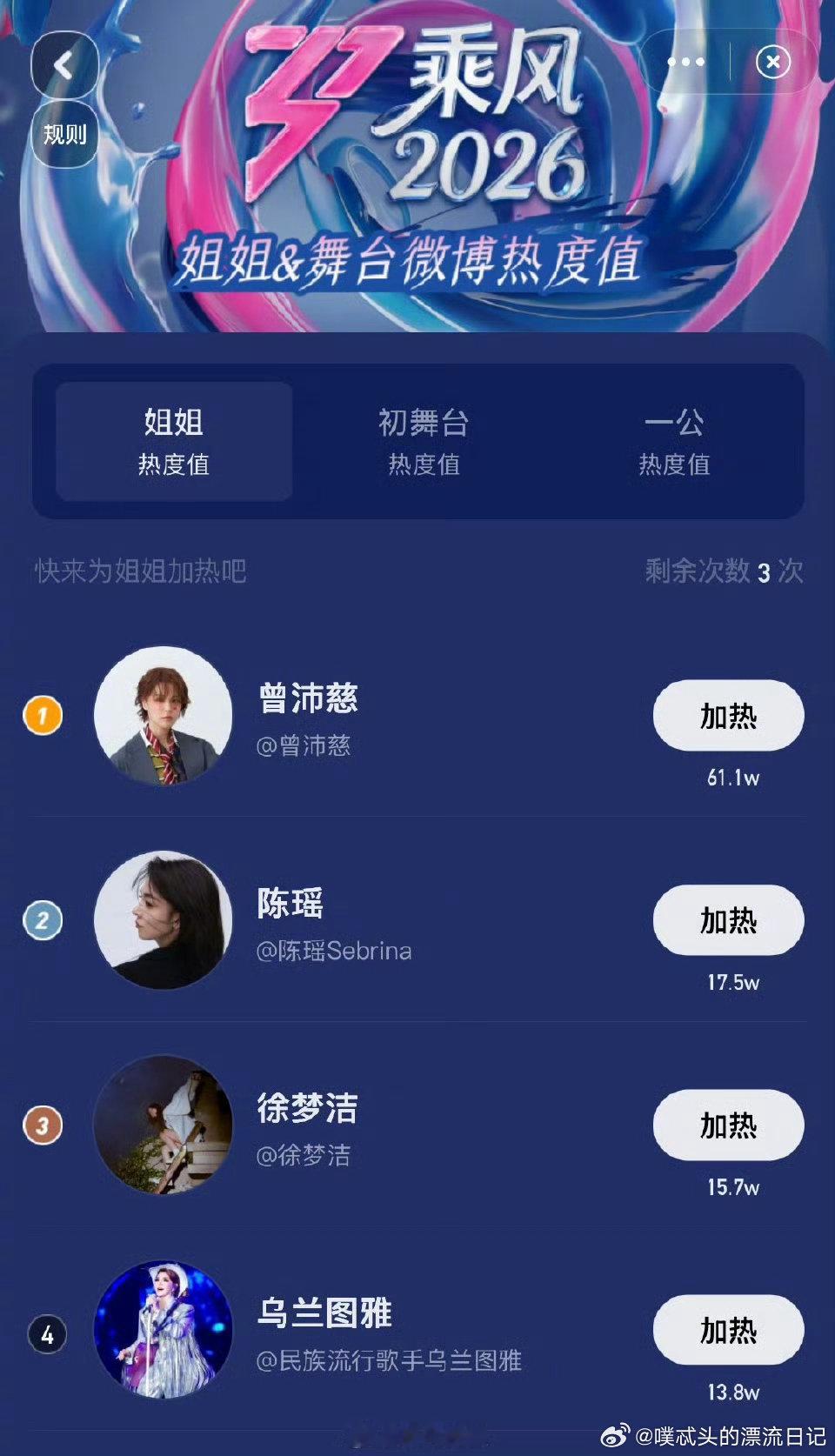 乘风2026一公个人喜爱度前十乘风2026 看到前十的姐姐们真心为她们开心,泡在