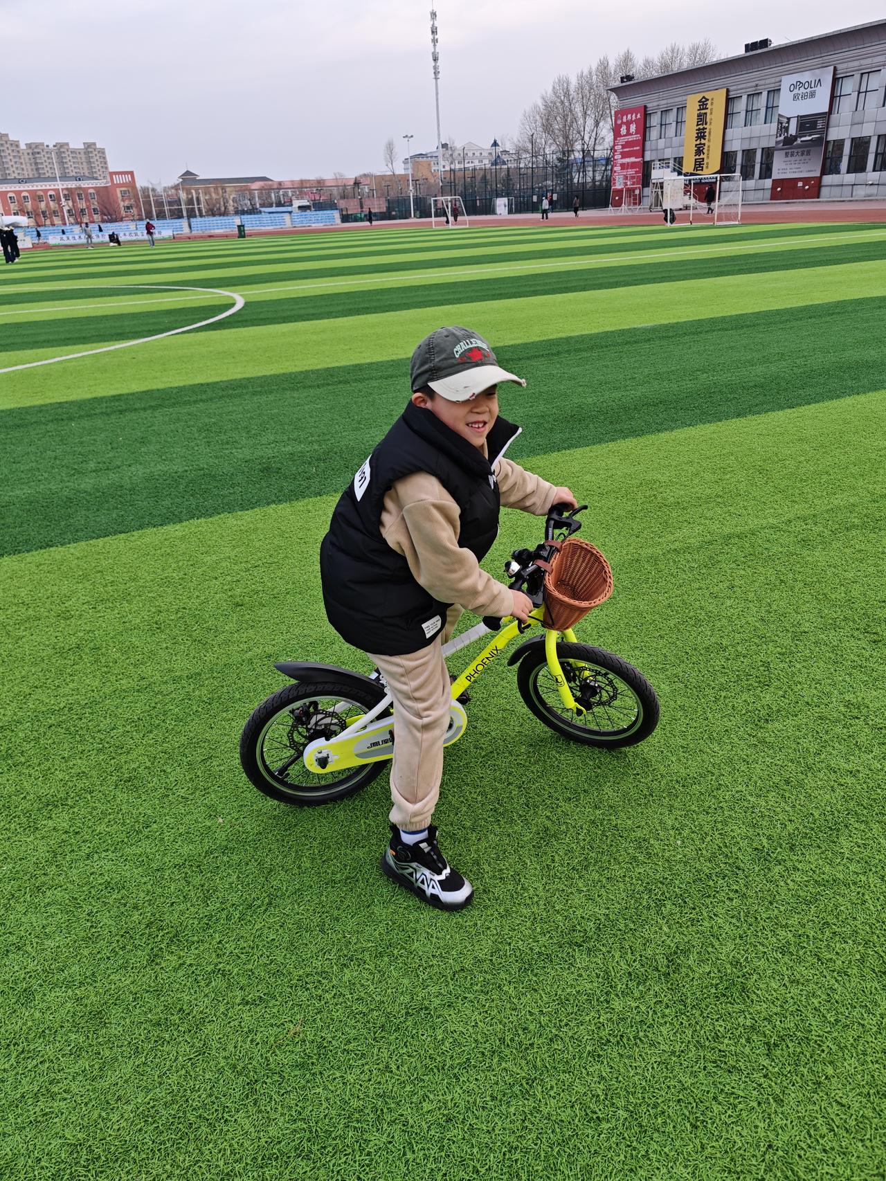 几圈下来,许是累了,好不容易到了体育场的中心地带,孙子开心地玩了一会儿。他看到同学后,把自行车立好,对我说:“奶奶,你帮我看着车,我去和他们玩会。”说完便没了踪影。
