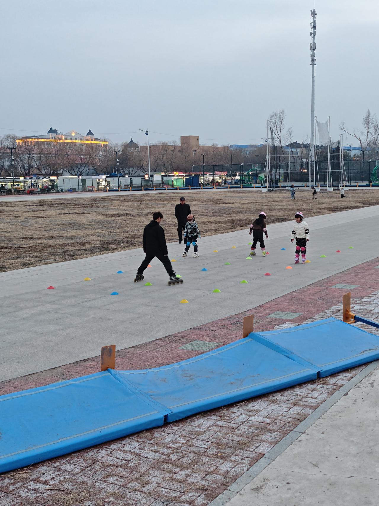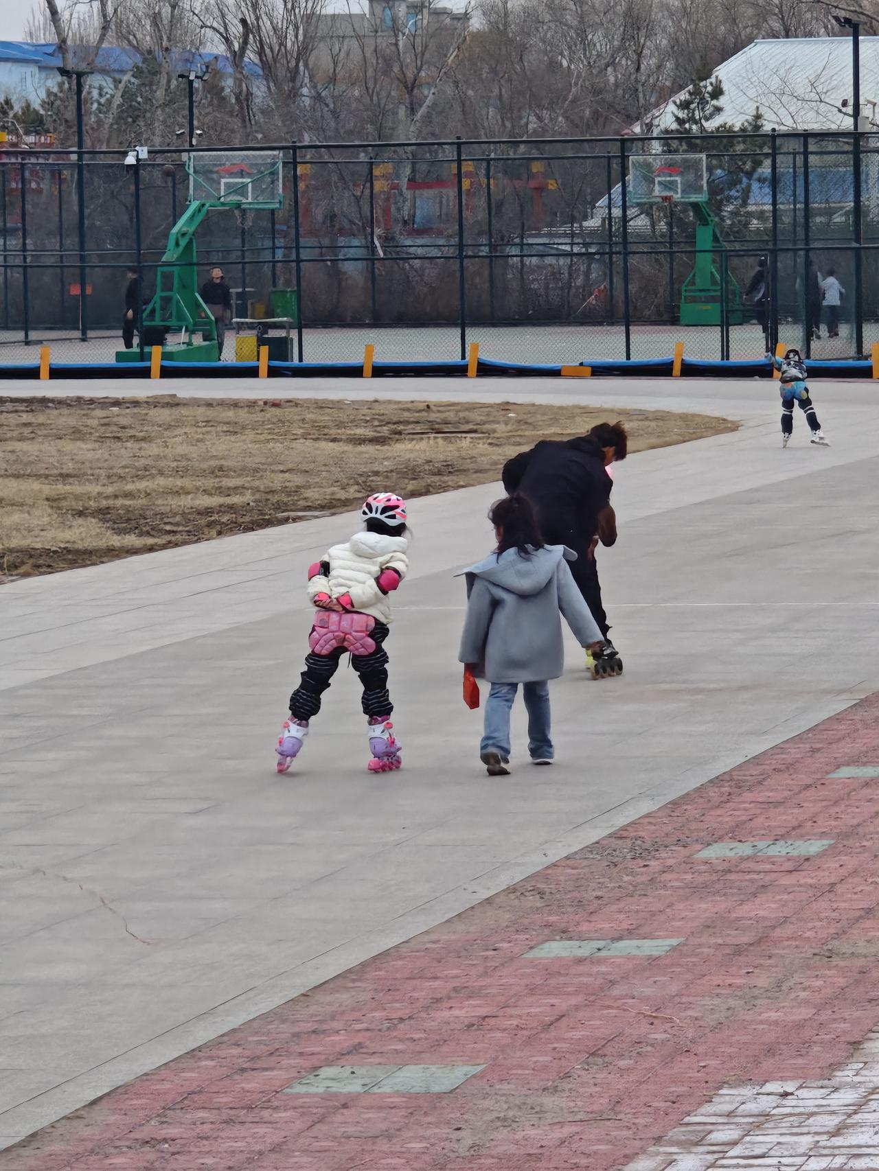 将近七点,终于在隔壁轮滑场地找到了他。正认真的听着轮滑老师的讲解呢。