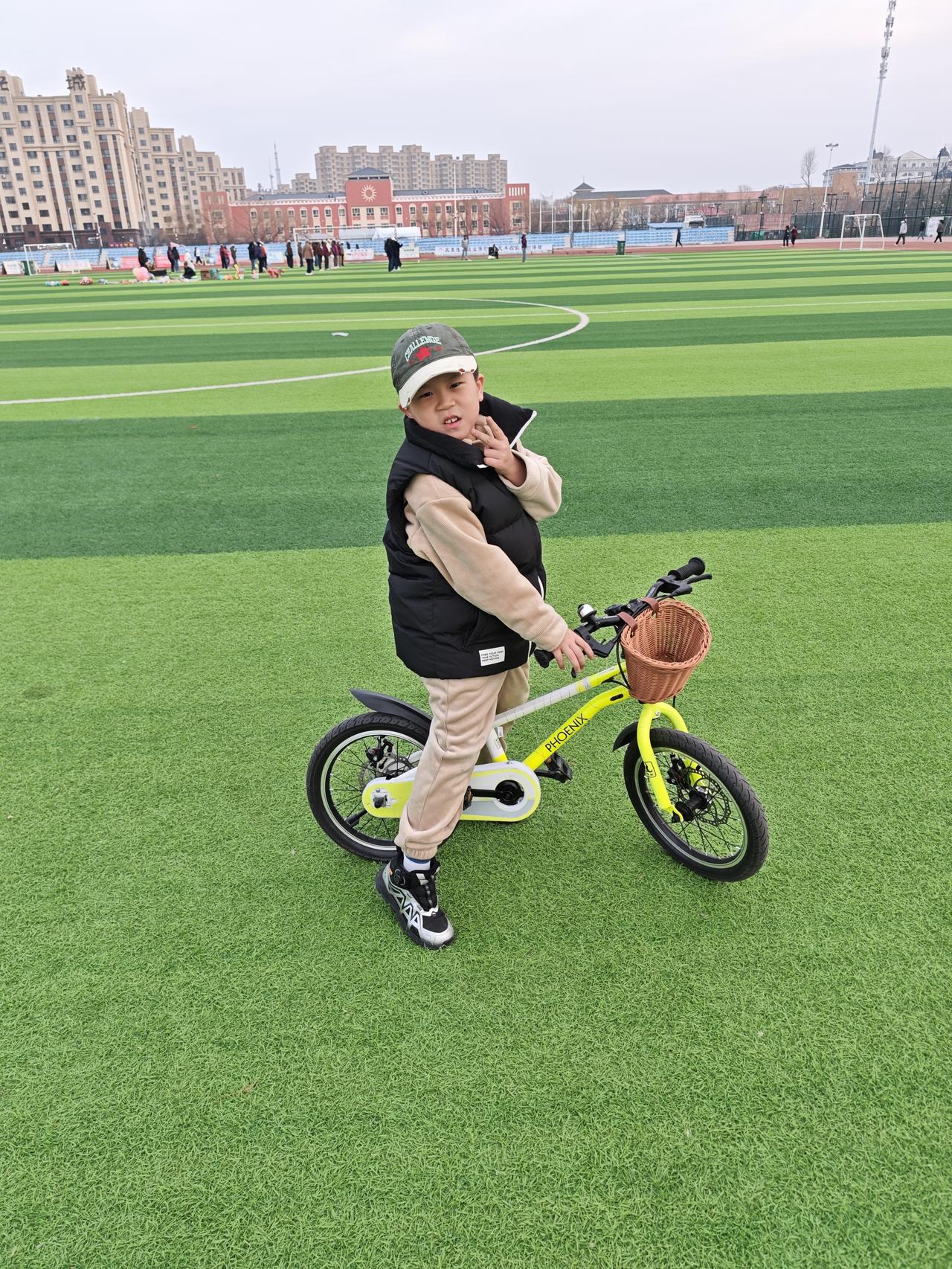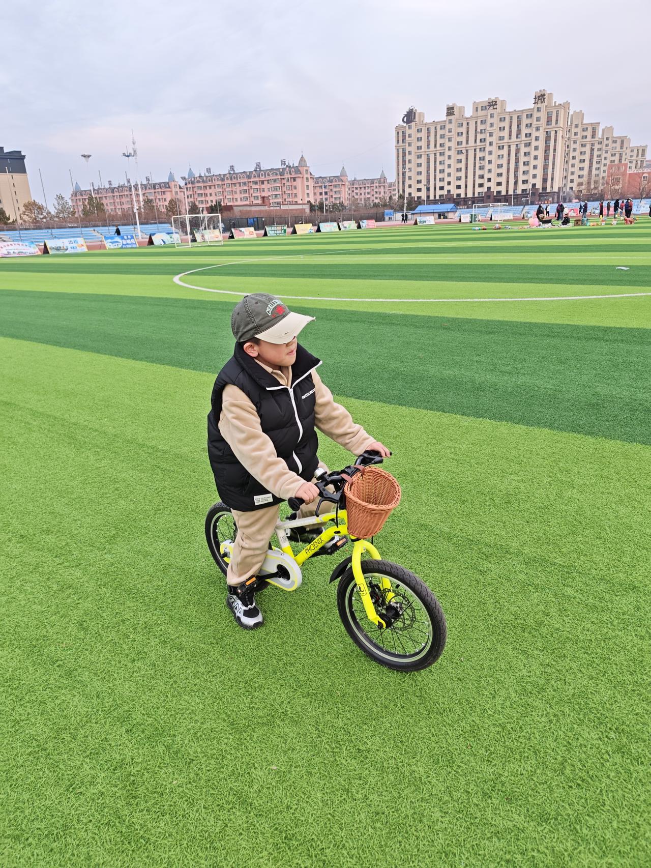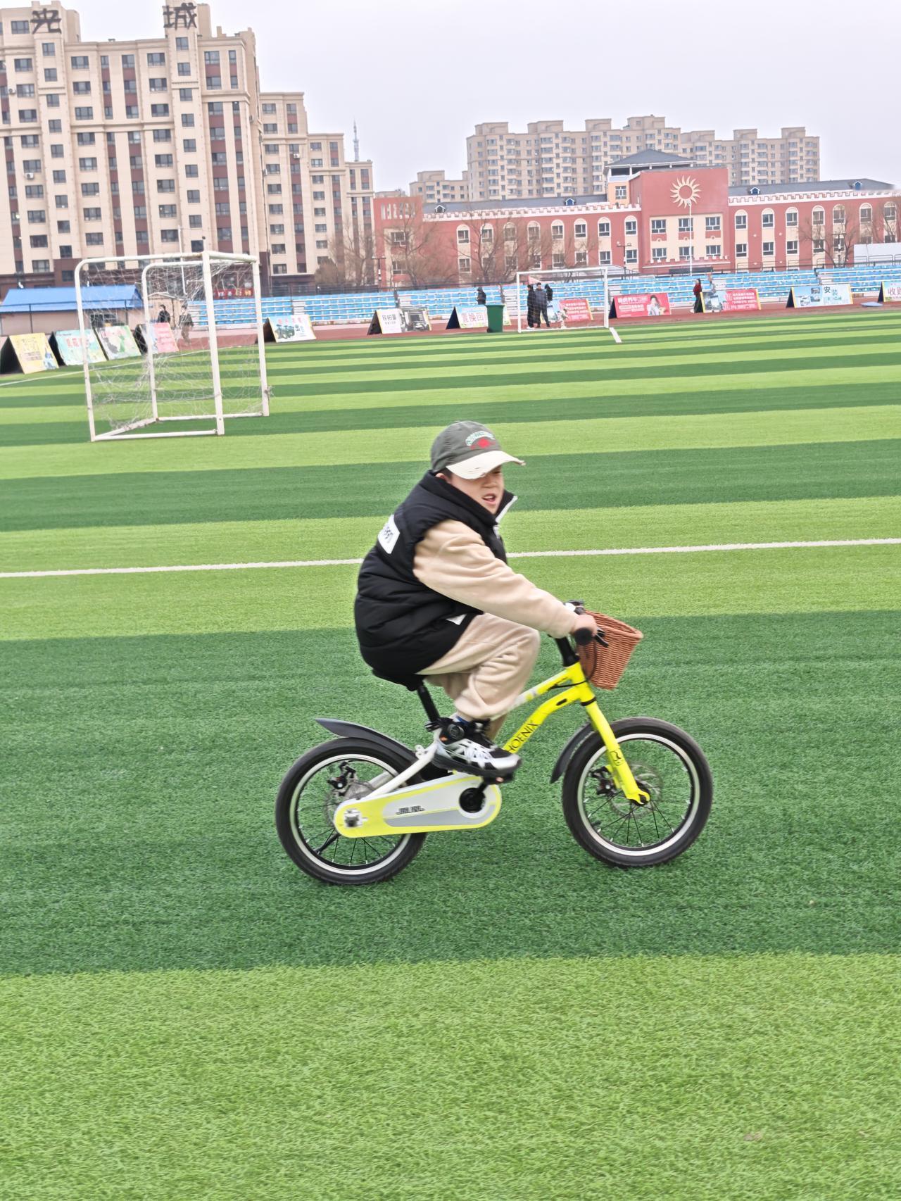 周三,吃完晚饭。我陪着孙子去体育场骑自行车。他骑车的速度快得像风一样,我根本跟不上。他围着红色跑道骑行,旁若无人,一路畅行无阻。
