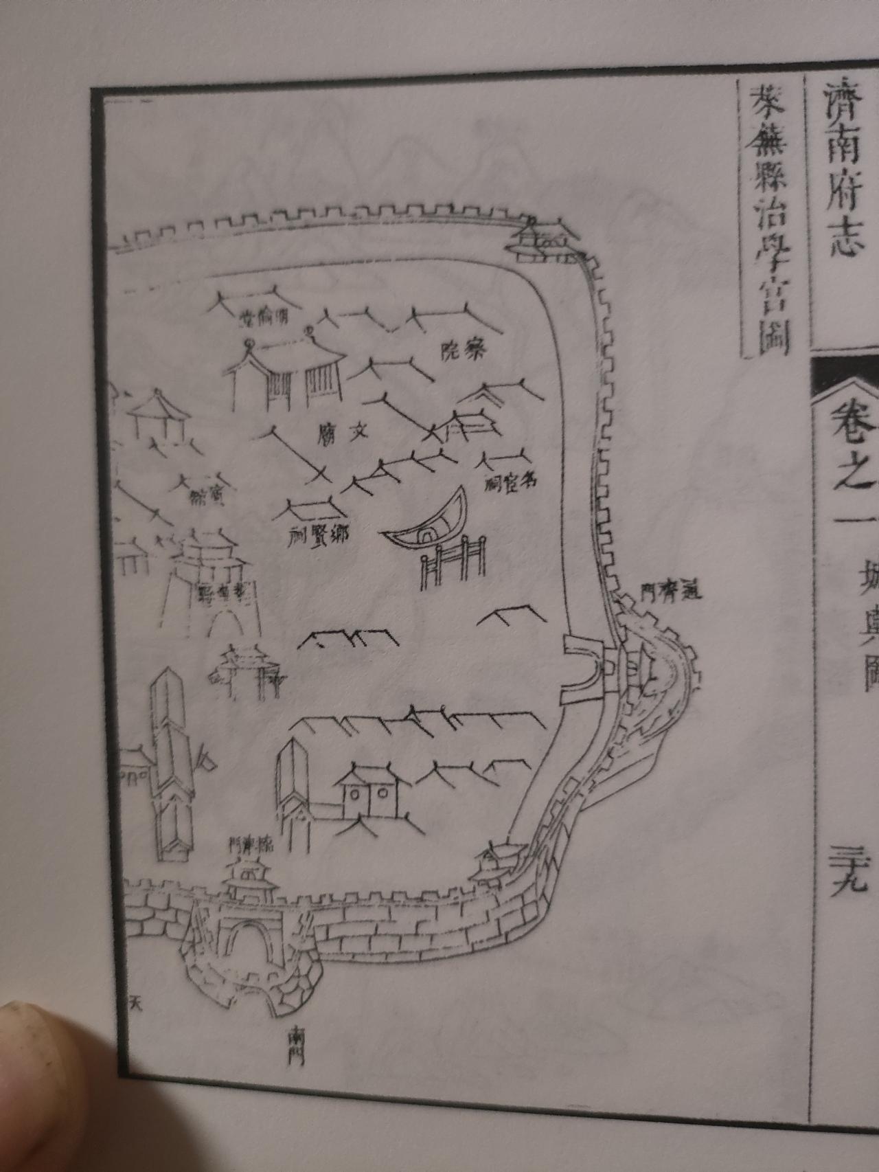 《康熙济南府志》始于康熙二十九年,成于三十一年,那时的莱芜,还是济南府泰安州辖下的一座小城。翻《济南府志》里的莱芜县治图,百年前的城池街巷、学宫庙宇历历在目。一纸旧图,藏着一城的过往风骨,原来历史就藏在这些笔墨里,沉静又动人。只可惜当年绘图简略,细节看得不甚真切,倒更添了几分追思的怅然。
