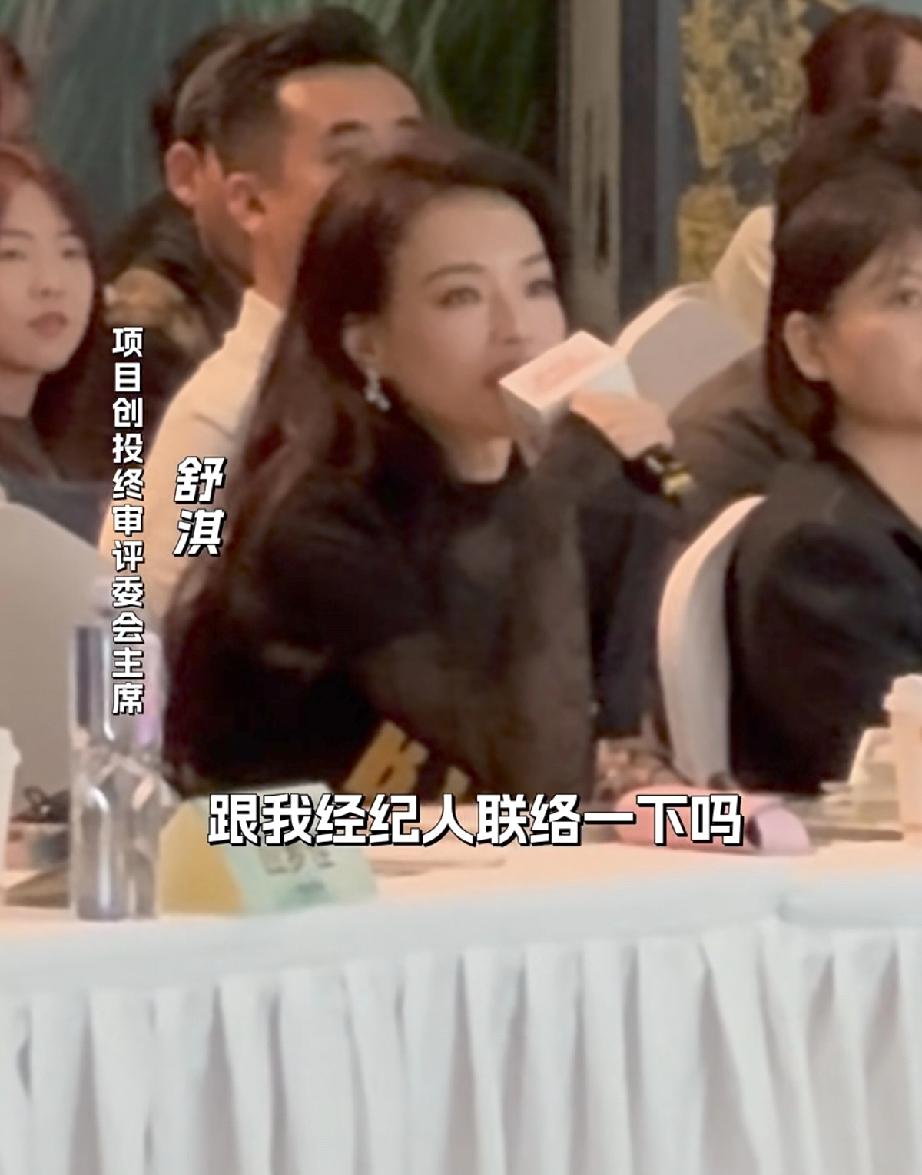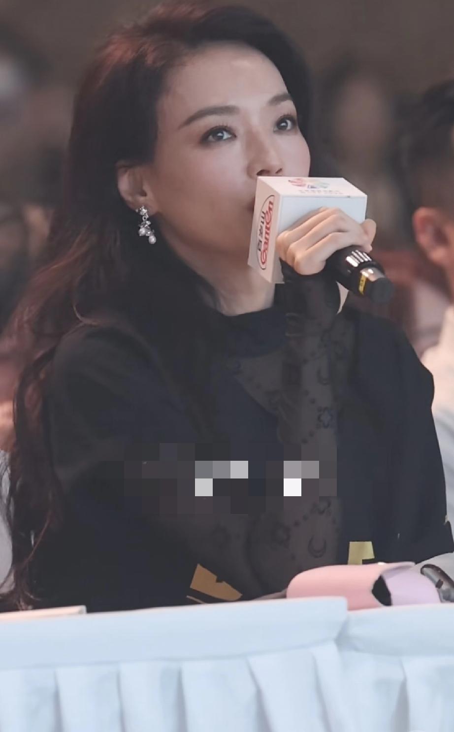 到后面说着说着,舒淇便把外面的风衣脱了,直接穿了修身的黑色衣服继续发表个人观点。