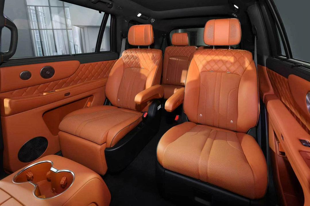 空间工程方面:三排头部空间863mm,三排肩部空间1322mm,二排通道宽度192mm,全车48处储物,后备箱可放5个20寸行李箱;二排零重力座椅靠背可调至123度,22点全身按摩含腿托4点,NAPPA皮面附红外反射涂层清凉效果15-20摄氏度,四门电吸加电动侧踏加空气悬架低姿迎宾,进出仪式感拉满。