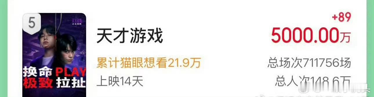 丁禹兮天才游戏票房破5000万!👏
