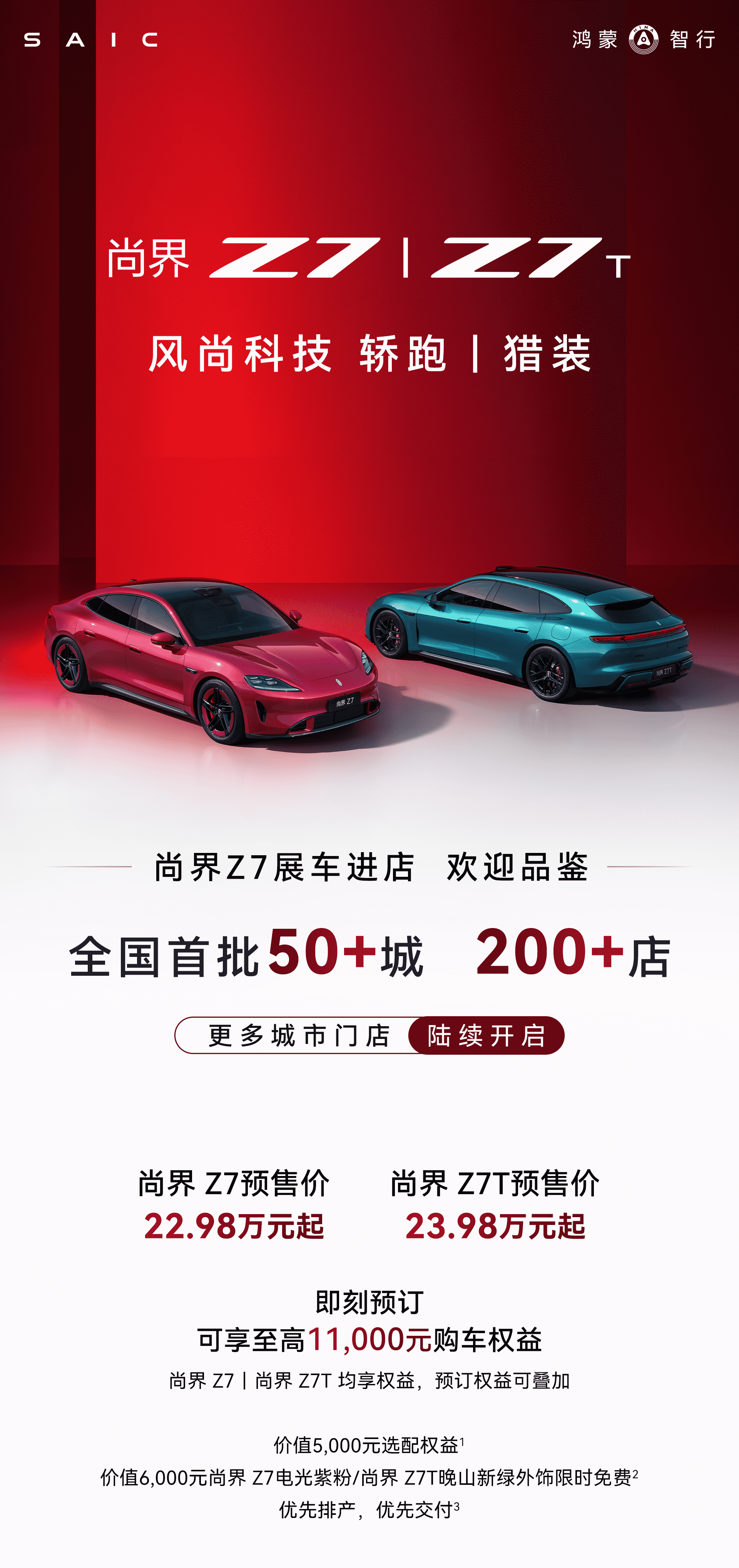 现象级爆款来了!尚界Z7、Z7T展车陆续覆盖全国200多家门店,线下展车体验全面