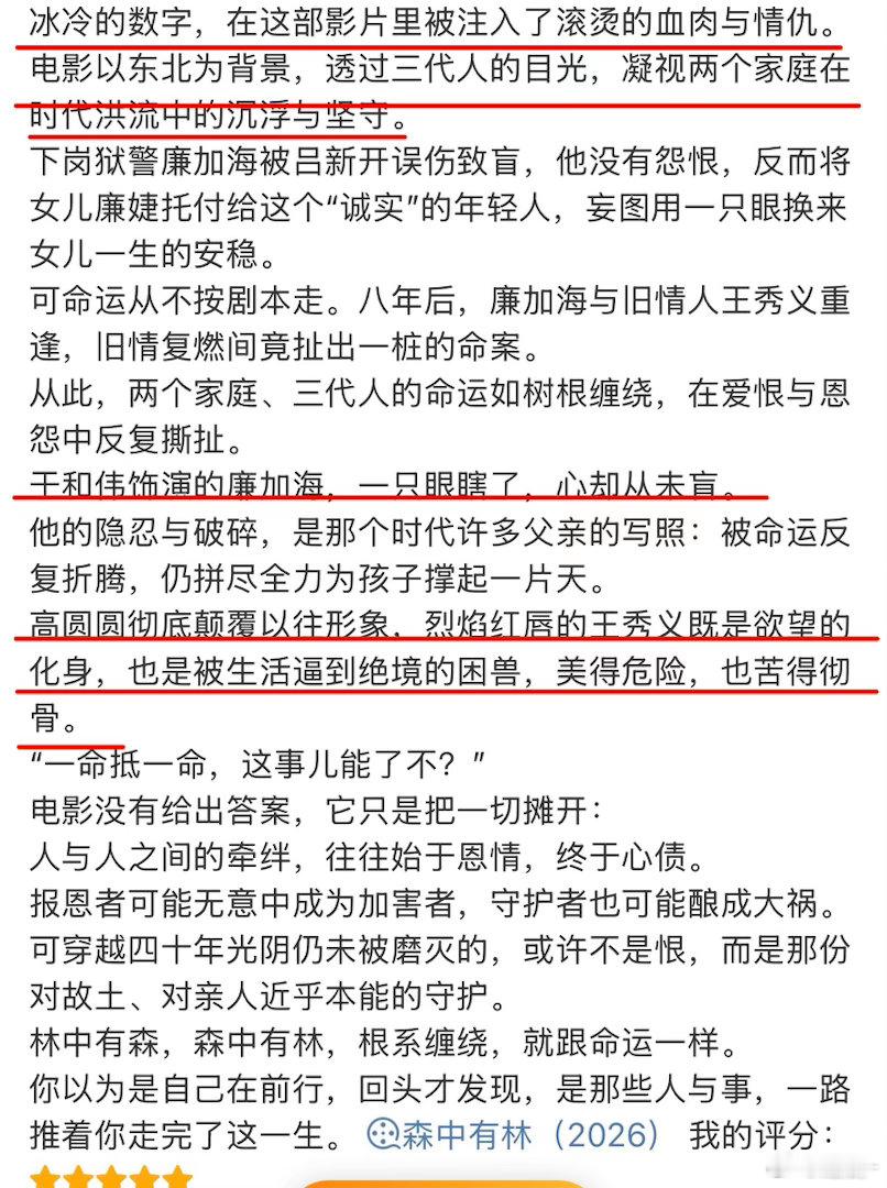 森中有林首波口碑北影节惊喜之作《森中有林》!跨越半世纪的爱恨悲歌,桃色与凶杀拍出高级质感。于和伟、高圆圆顶级拉扯,韩庚张天爱反差惊喜。原著亲自执笔够猛够真,时代宿命交织,越品越上头。