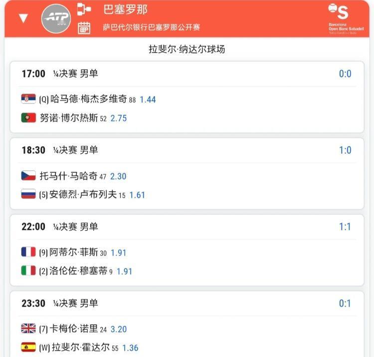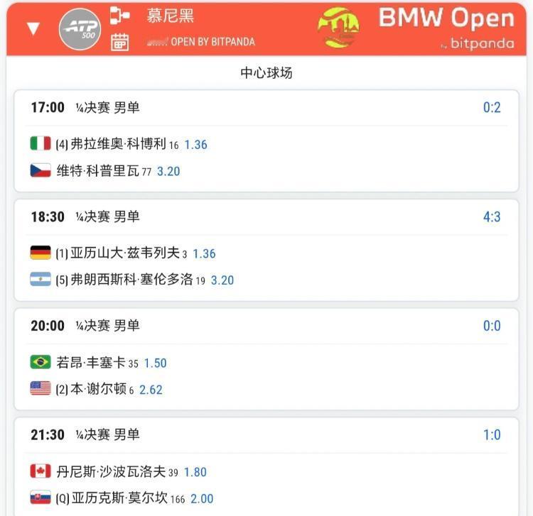4月17日网球500赛赛程!! 有你想看的场次吗?网球巡回赛赛程 网球赛事安排