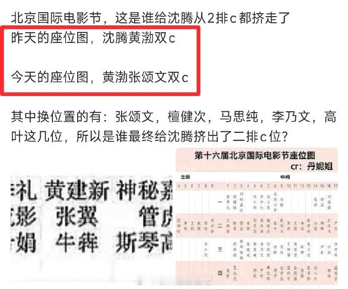 什么意思?张颂文抢了沈腾位置?谁抢C位了?现在是张颂文黄渤双C, 沈腾在旁边 沈腾粉丝艾特张颂文和北影节要求给座位的事一个说法