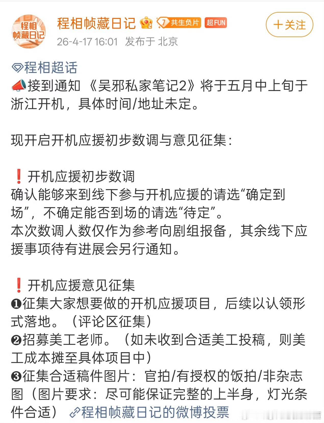因为吴邪的私家笔记2开机通知程相对接通知的更早,徐振轩粉丝在维权