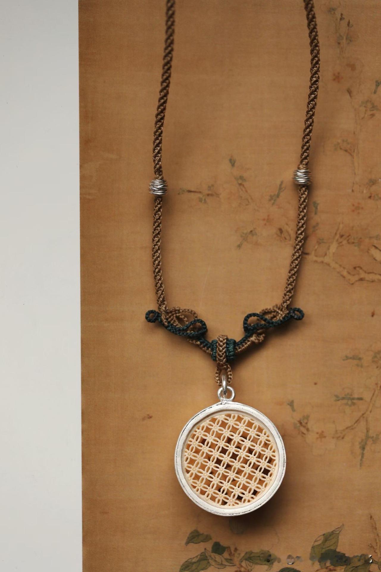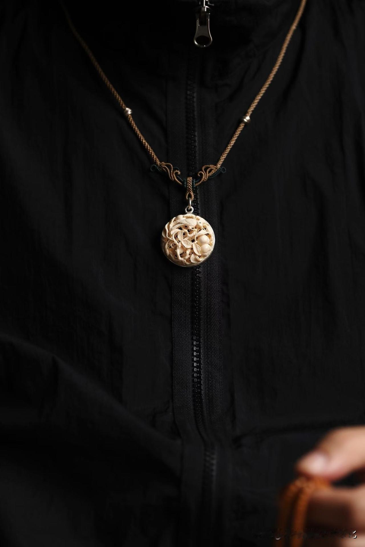 银作包边,将温润与冷冽轻轻扣在一起,像是把时间与当下系在一根绳上。佩在胸前,不张扬,却总有一瞬,让人目光停住。