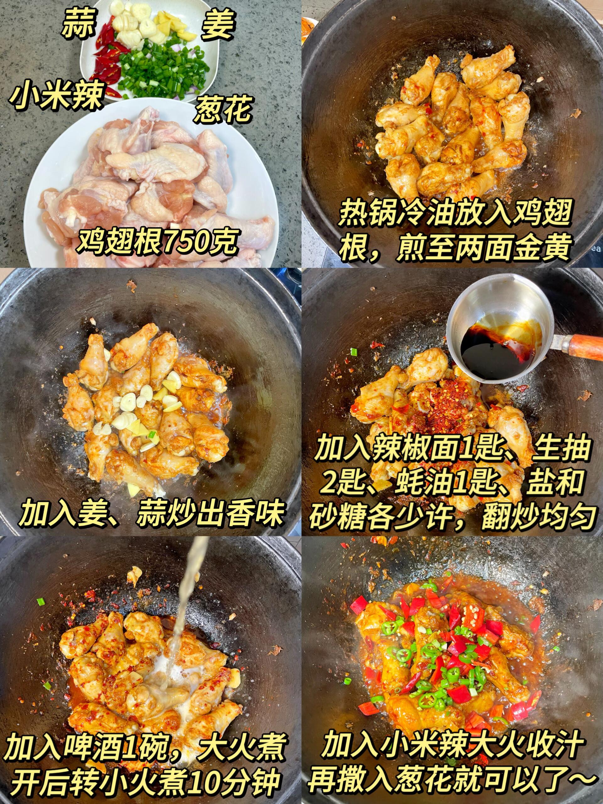 鸡翅根、姜葱蒜、小米辣、辣椒面、啤酒