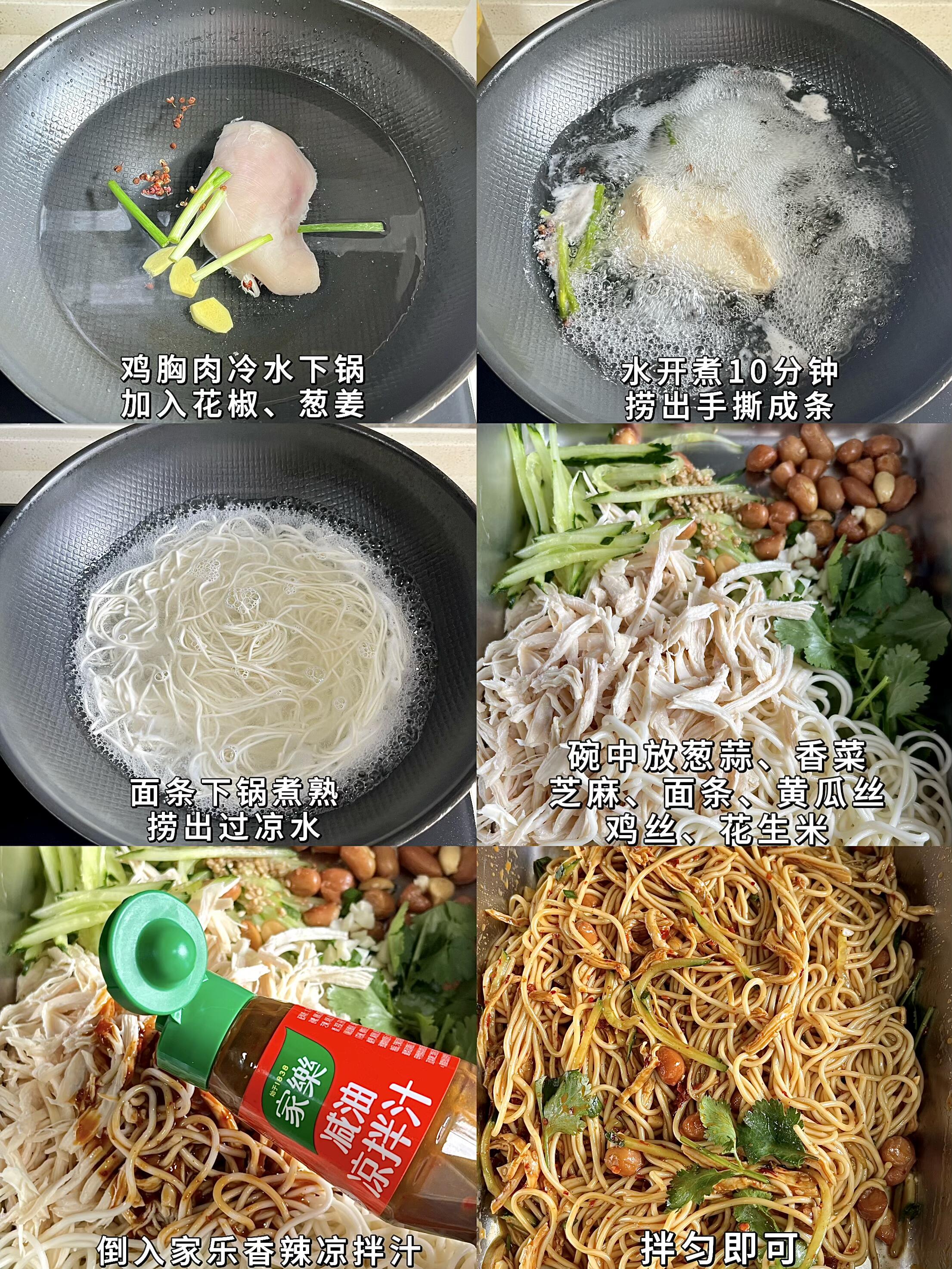 筋道爽滑的面条,裹上鲜嫩不柴的鸡丝,再拌上灵魂料汁,清爽不腻,一口下去浑身都舒服,开胃又解乏,夏天吃真的太绝了!