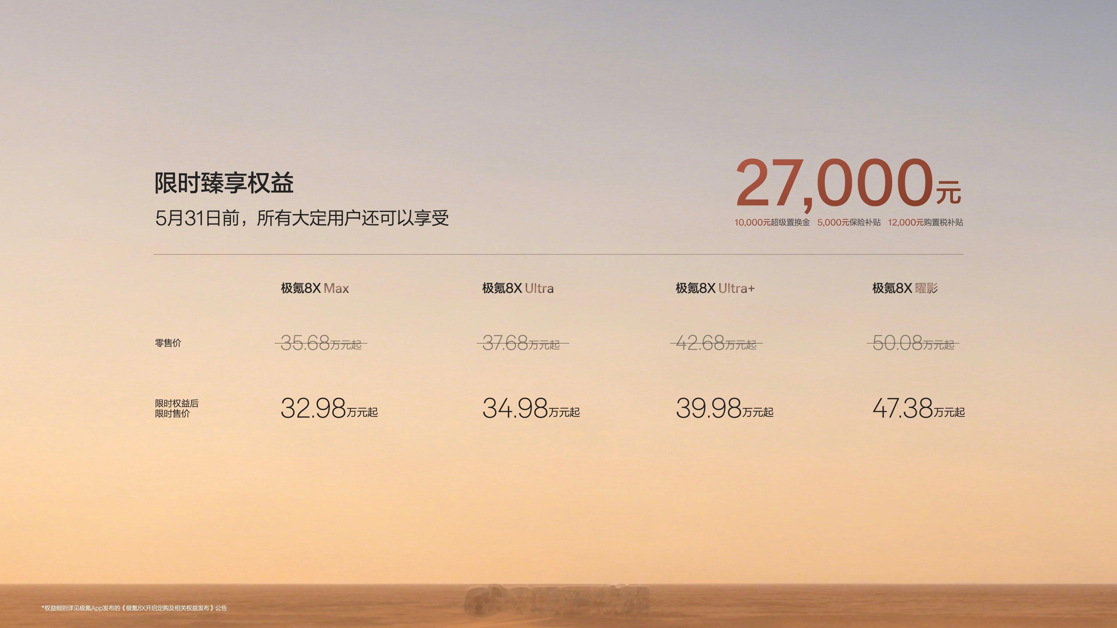 极氪8X上市权益价32.98万元起,极氪品牌新车首任车主增换购,连续5年赠送1,
