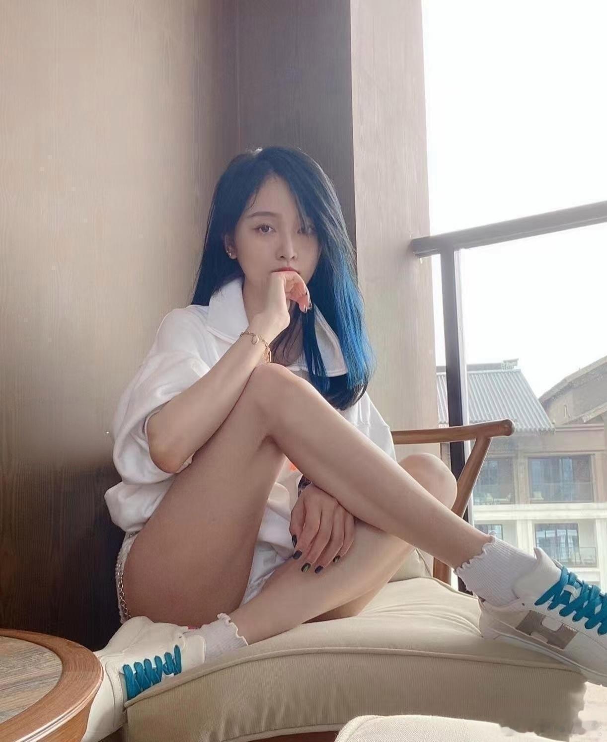 吴宣仪这坐姿好显腿长,又细又白。