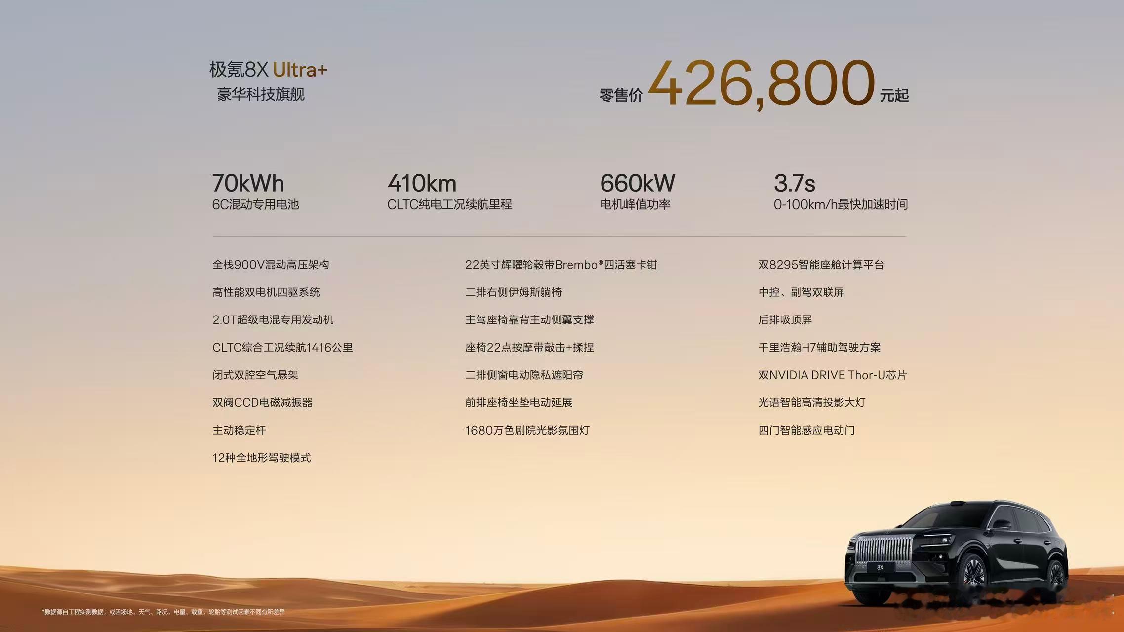 从产品逻辑看,它想解决的不只是续航和充电问题,而是高端用户既想要电车的平顺、加速,又不想被补能束缚,同时还看重空间、豪华感和通过性的需求。这套900V高压+超级电混,再加上空气悬架、多地形模式,更像是一台没有明显短板的家用旗舰,而不是单纯的性能玩具。