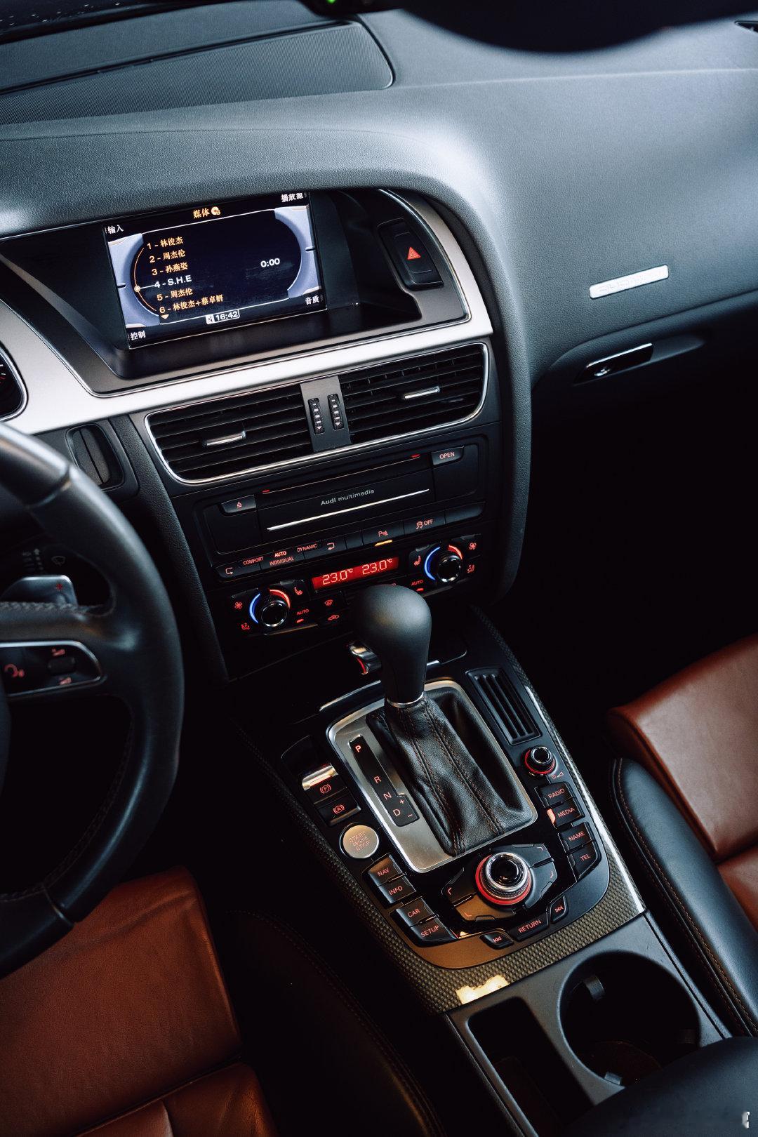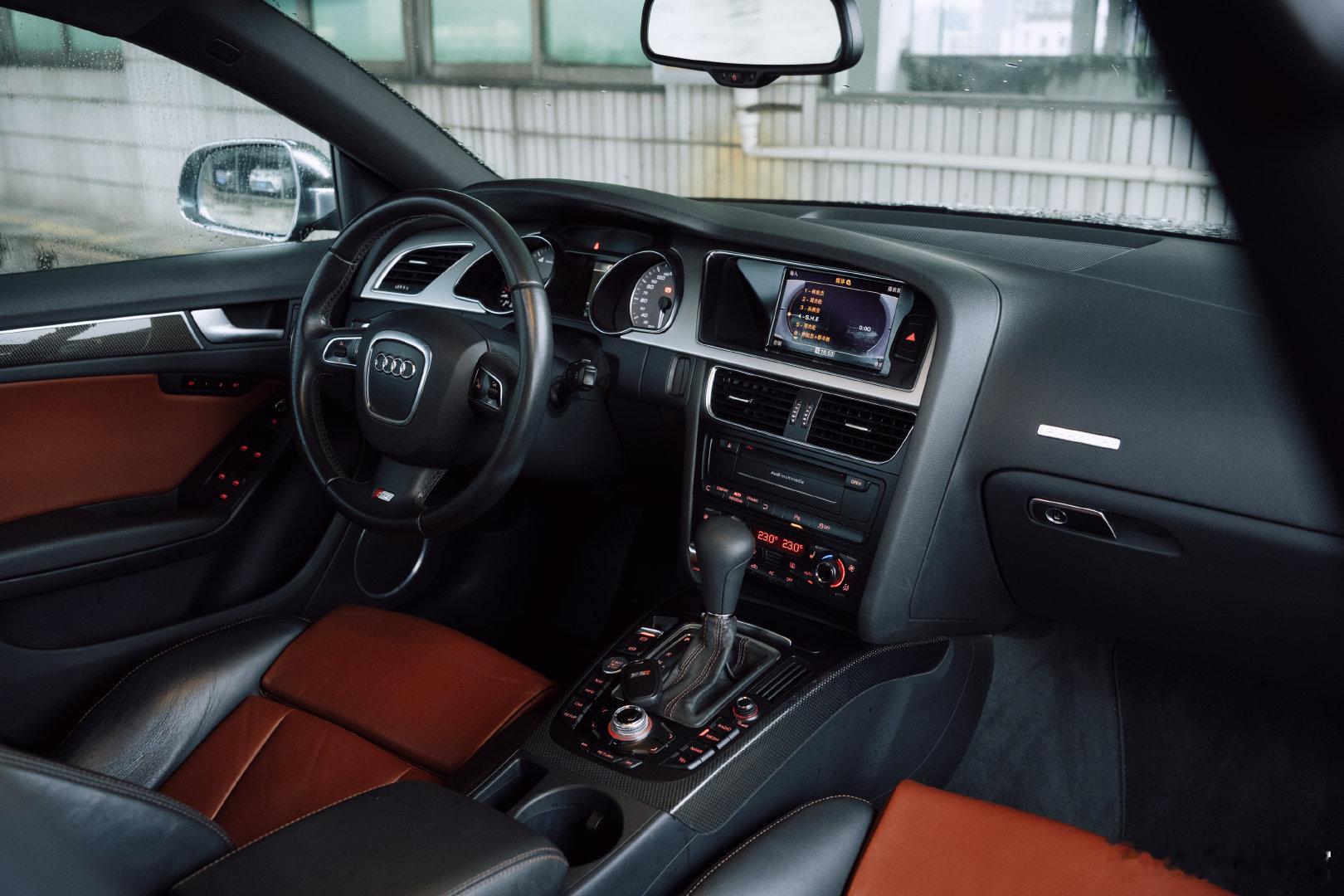 与A4L高配设计一致的内饰看起来会略微有些降低兴致,只有个别细节显露了与众不同。带S5徽标的座椅皮质很细腻,奥迪叫它Silk Nappa,乘坐舒适性和人机要优于A4L的座椅。选装的碳纤维饰板做工十分精良,B&O音响也是你快速移动时的得力伙伴。