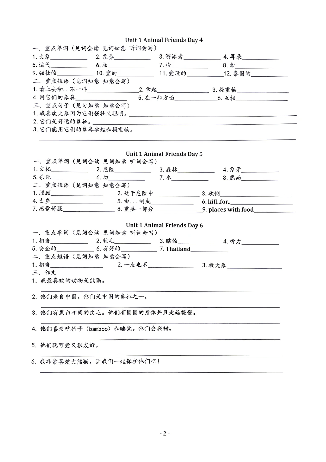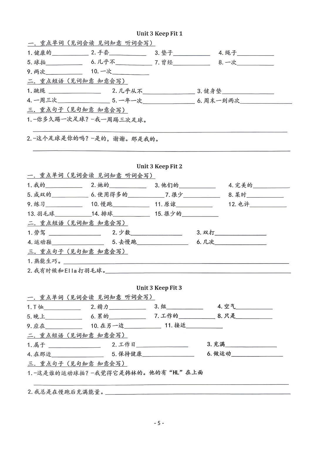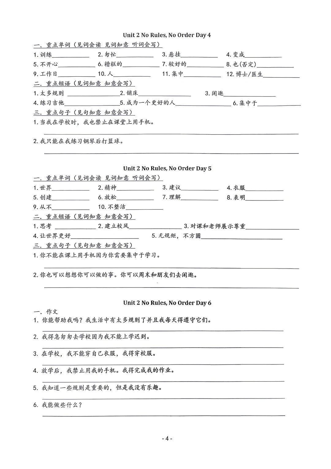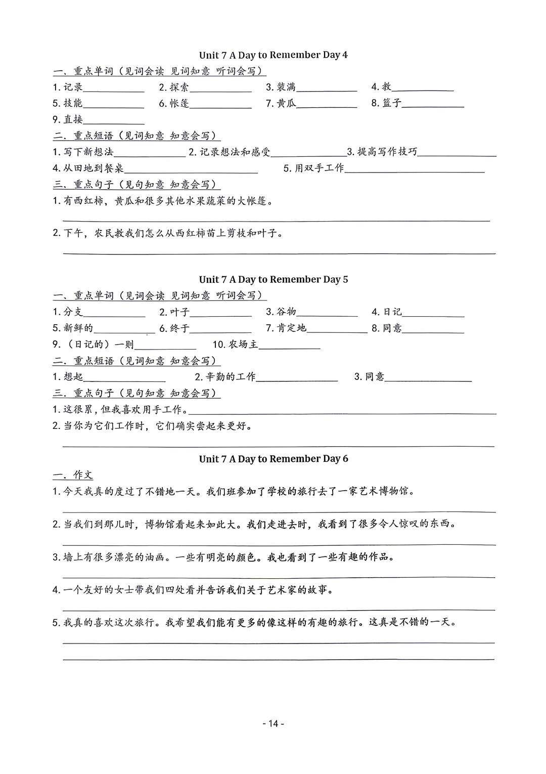 新版七年级下册英语默写手册