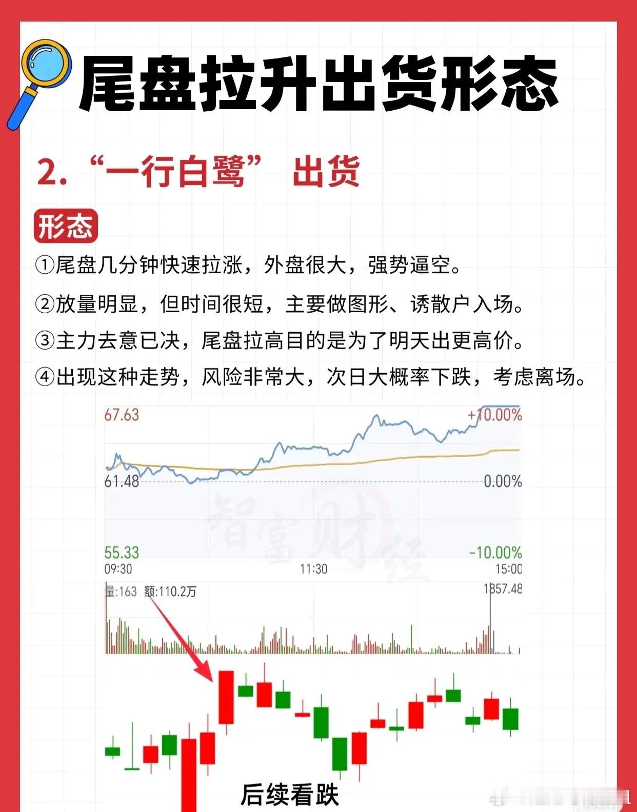(注:以上形态需结合个股位置、成交量、整体趋势综合判断,单一形态不绝对,但尾盘拉升出货的风险信号需重视。)