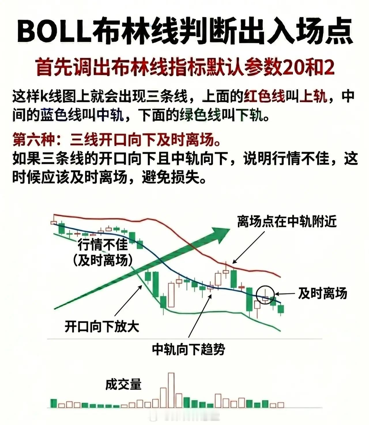 - 特征:上轨、中轨、下轨同步向下发散,表明市场呈弱势下行趋势。- 策略:「买在下轨,卖在中轨」,短线博弈反弹。弱势行情中,下轨是阶段性支撑(价格超跌后易反弹),但中轨是短期压力(反弹至中轨附近易再次回落),需快进快出。