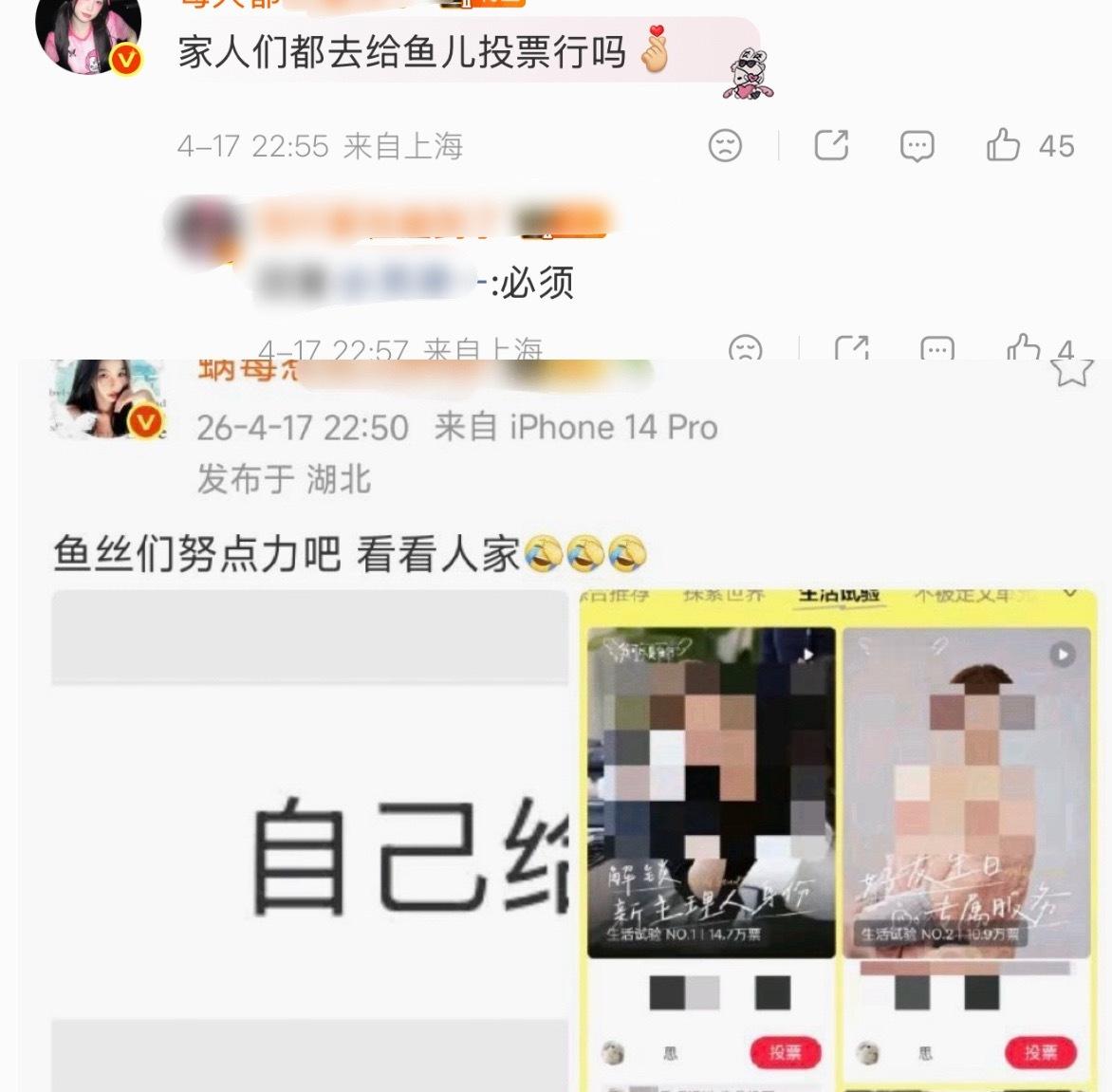 🐟丝真的好难评,其实起承转合就是拿露思去催投票,窝鱼亲自下场催就算了,还要截别人点赞的图安露思头上催…