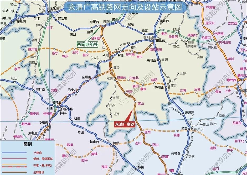 就在黔吉高铁评审完成一周后,4月17日湖南铁路有限公司发布《新建永州经清远至广州铁路邵阳地区西南联络线社会稳定风险分析评估咨询服务》招标公告,标志着这条衔接两大通道的关键联络线,正式进入可研批复的核心前期阶段。公告显示,该联络线线路全长约13.3公里,自怀邵衡铁路邵阳西站东侧引出,依次上跨怀邵衡铁路、沪昆高速、二广高速、资水、益湛线后,与在建邵永铁路接轨。这条联络线的核心价值,在于打通了线路衔接的关键节点——通过张吉怀、怀邵衡、邵永高铁的串联,黔吉高铁与永清广高铁将实现无缝衔接,最终形成与贵广高铁并行、成渝双城经济圈直通粤港澳大湾区的高铁新通道。