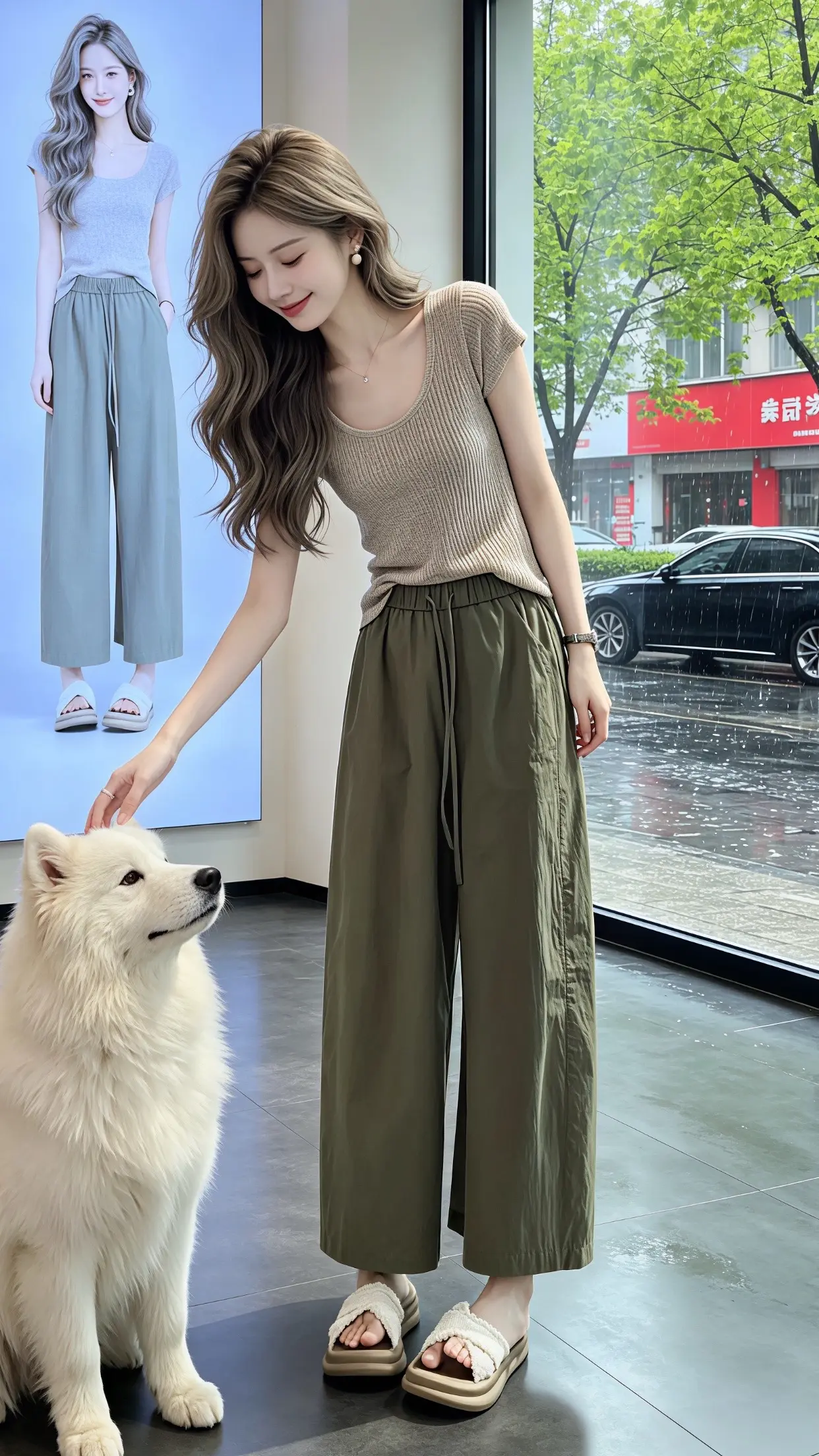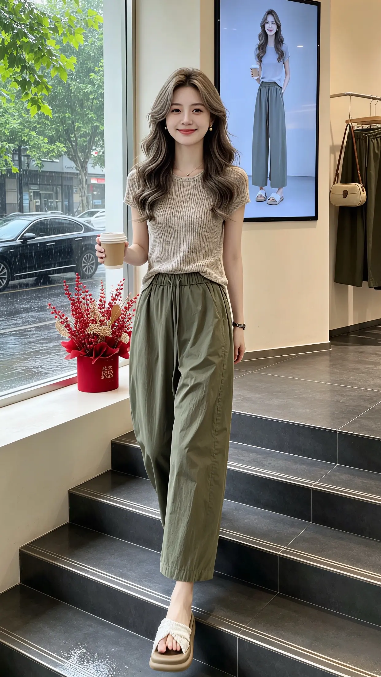 回头率超高的时髦老钱风!这组大地色系穿搭太绝了,浅咖针织Polo衫搭配藏青阔腿