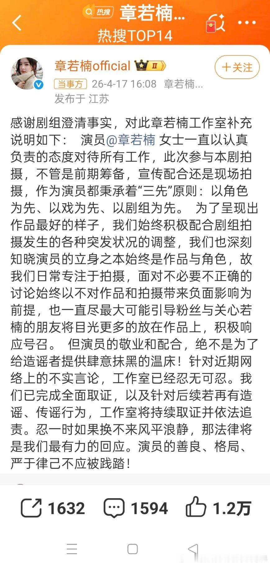 章若楠方补充说明剧组已经说的很清楚了,并不是所谓的走神,而是突然被叫的正常反应