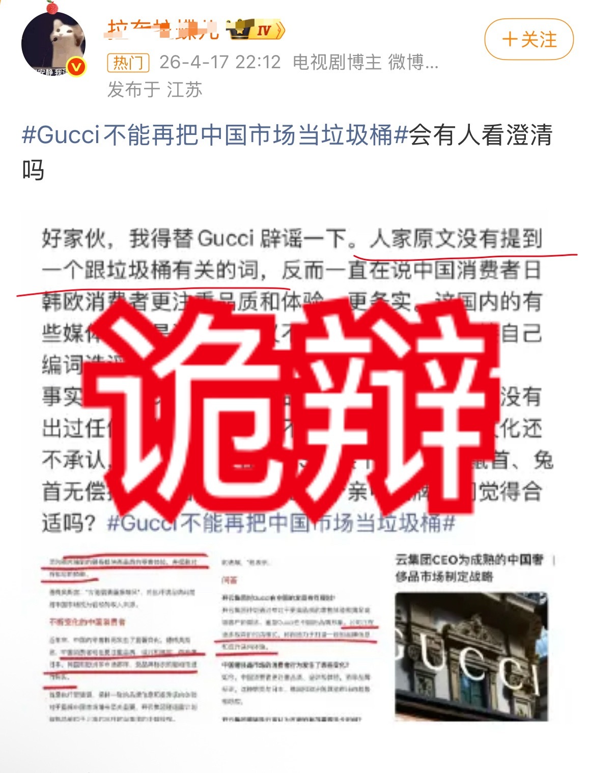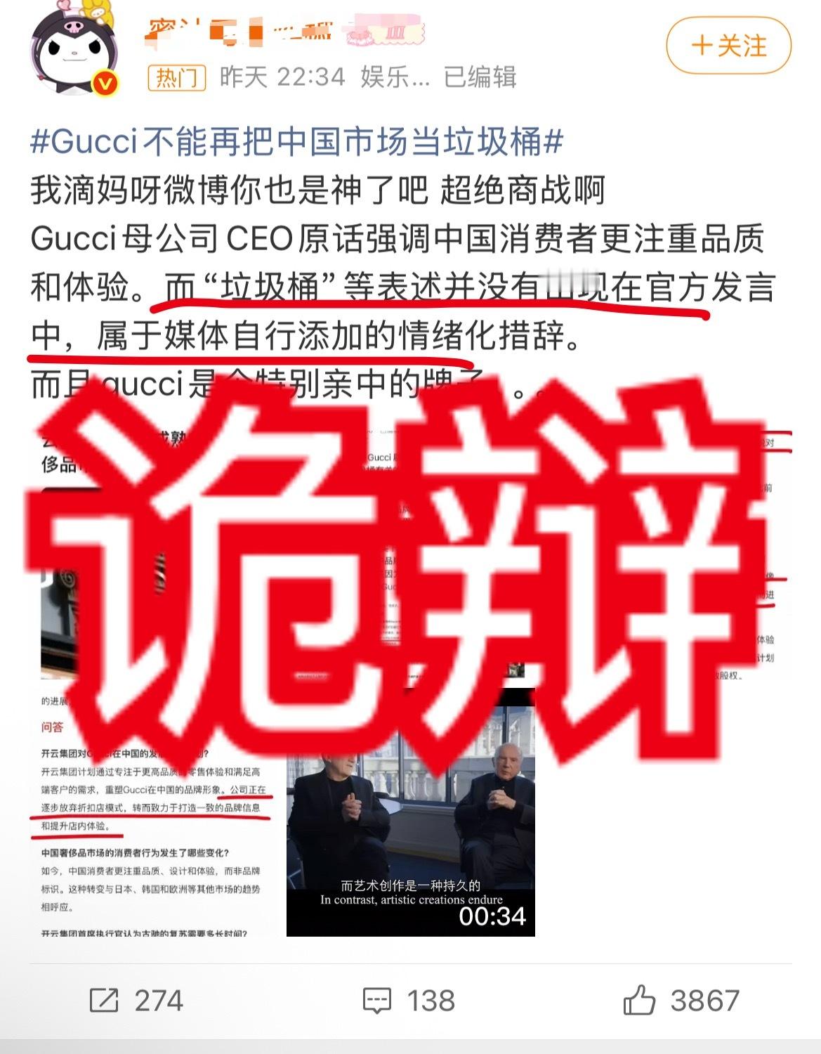 Gucci不能再把中国市场当垃圾桶原文提到垃圾桶了,谢谢 (p3原文第5段)