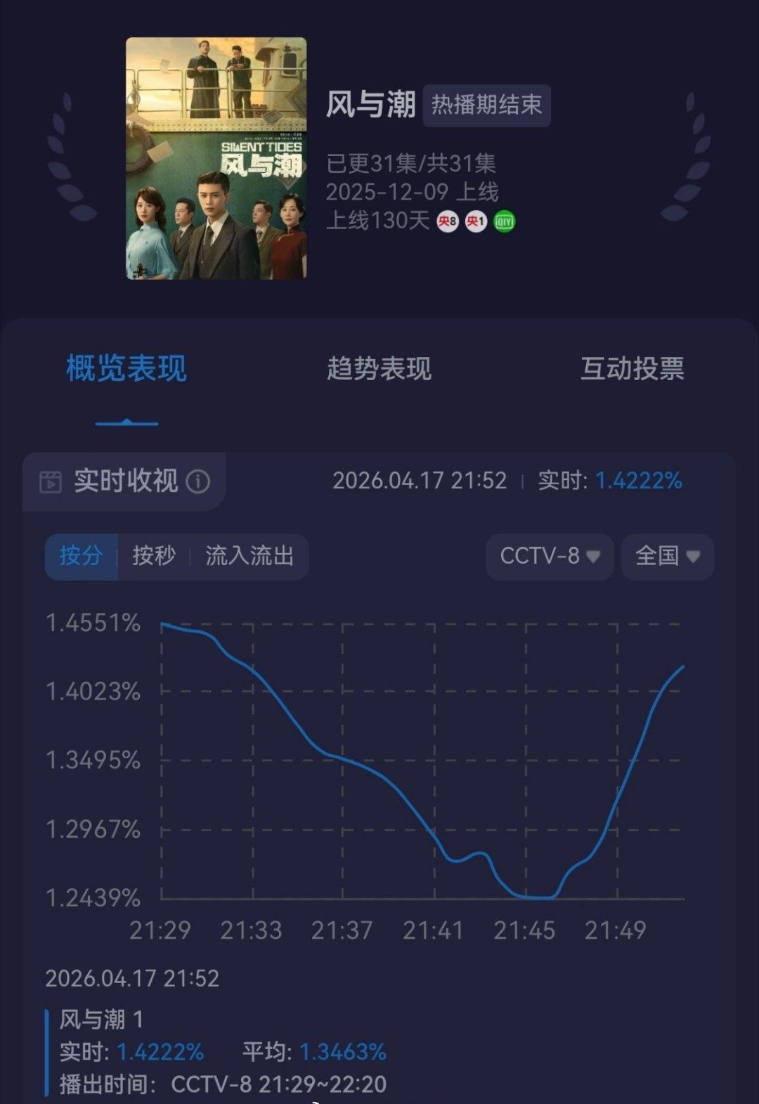 《风与潮》央八次黄档收视率