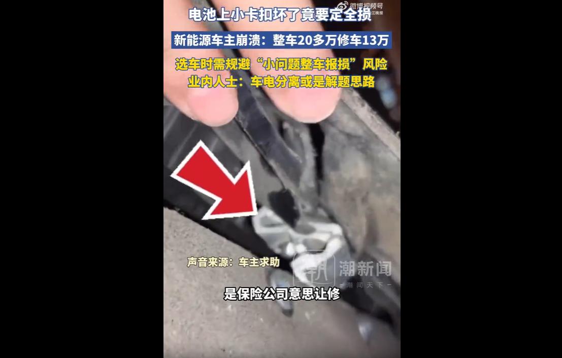 还好有车电分离这个破局之道,能规避小问题整车报损的风险,可现在大多车型还是车电一体,普通车主根本没得选。
