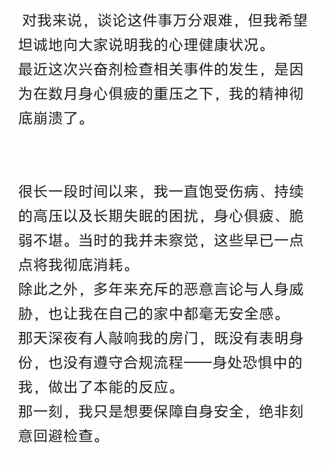 去年12月3日,她在一次兴奋剂检测中拒绝提供采样样本,这一行为将被视同使用违禁药物罪名成立。
