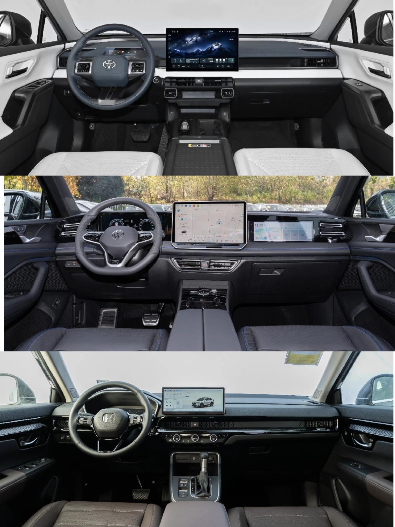 CRV内饰质感在三台车中显得稍微差一些,塑料感偏重。屏幕小,看着不够大气,相比荣放和途观看起来就没那么吸引人了。再就是这台车的隔音做的舒适一般。