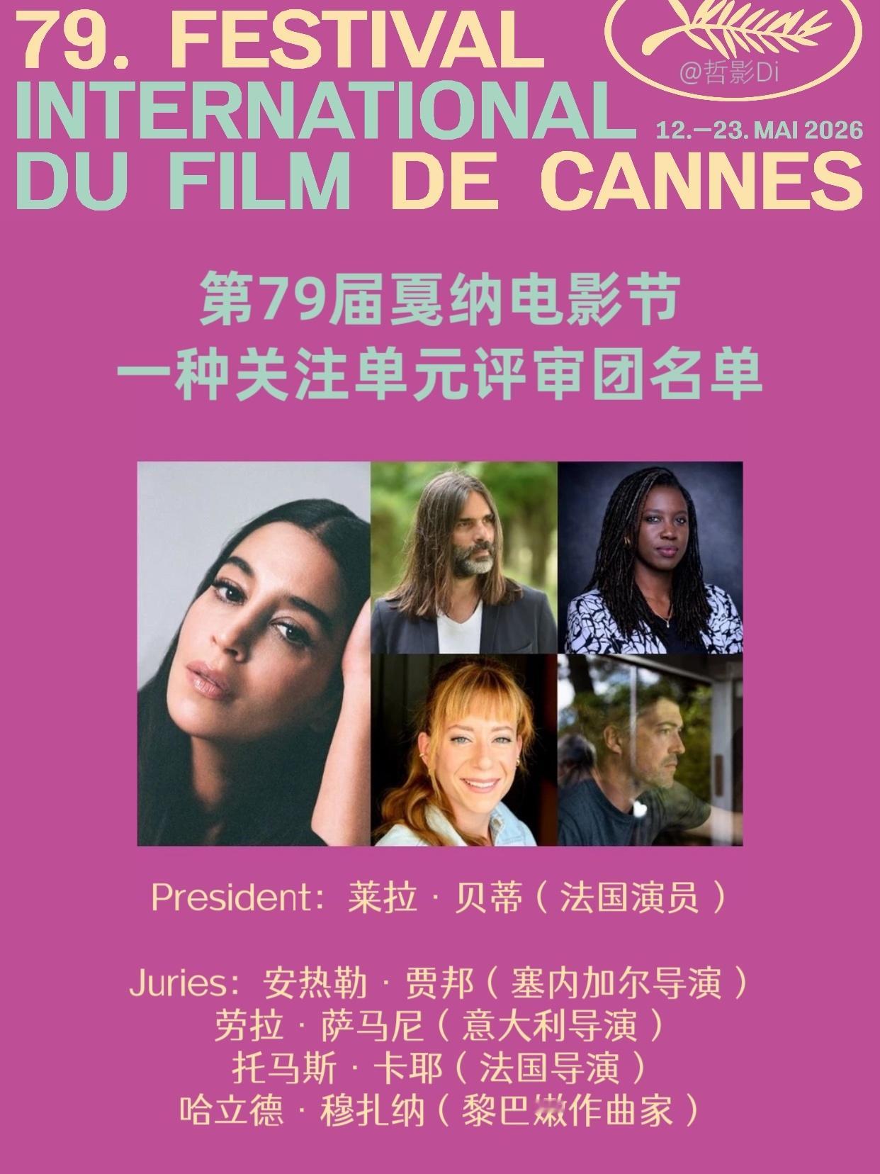 第79届戛纳电影节公布一种关注单元评审团名单,评审团有五人组成,三女两男,法国演员莱拉·贝蒂担任本届一种关注单元评审团president。本届戛纳电影节将于5月12日-23日举行。以下为评审团名单↓ ↓ ↓